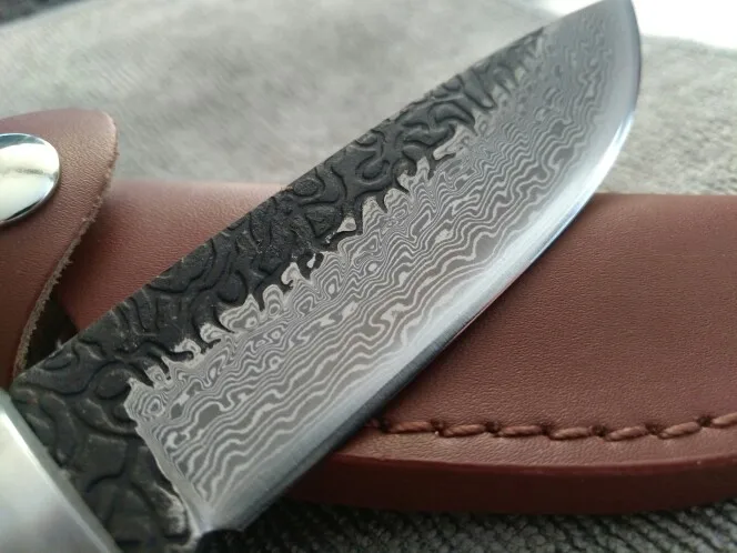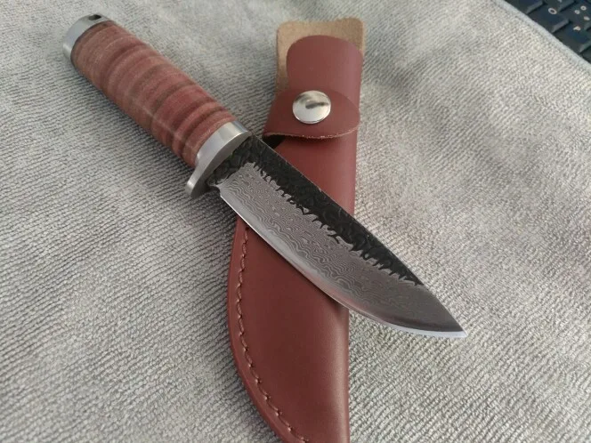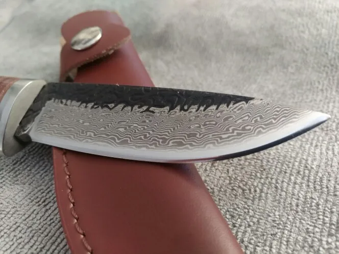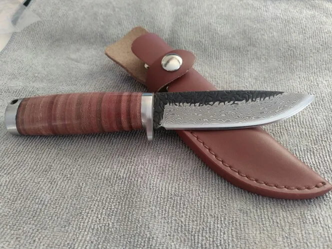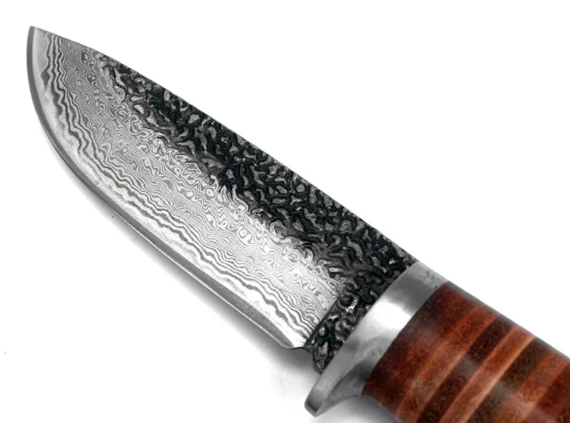 Охотничий нож KKWOLF с фиксированным лезвием, кованый нож ручной работы из дамасской стали для кемпинга, 58HRC, с кожаной ручкой, тактический инструмент для выживания