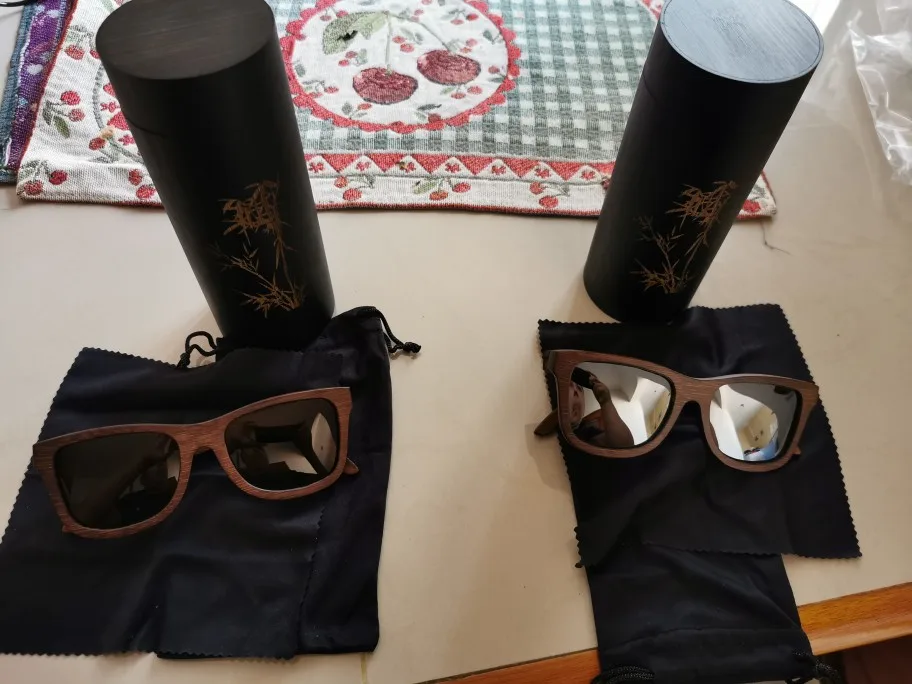 Очень быстрая доставка в течение 30 дней! Красивые очки, очень хорошее качество изготовления, очень хорошие линзы, Бамбуковая коробка, идеально подходит для подарка.