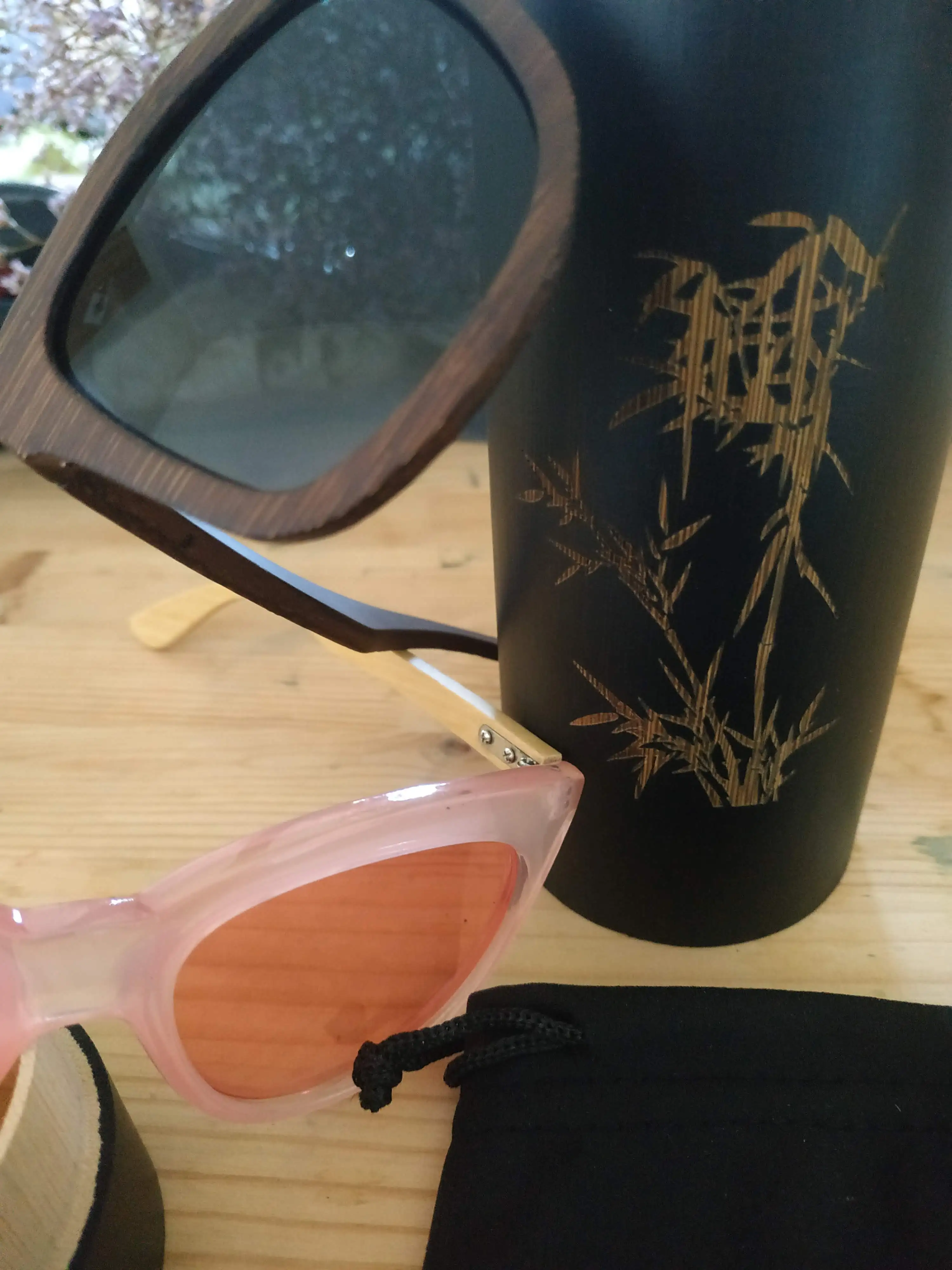 Очень красивые очки в их футляре. Оригинальное и экологичное. Идеальное поляризованное стекло. Больше чехла, чистящей ткани и мини-отвертки для ключей!!!! ****** 5 звезд ****** быстрая и аккуратная доставка Идеально подходит для подарка