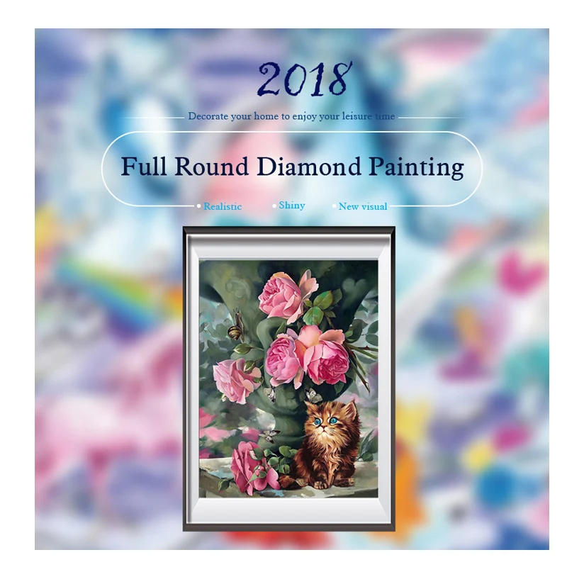 Алмазная 5D Вышивка розы и кот, полностью покрытая стразами, 3D картина, круглые стразы, алмазная живопись, вышивка, цветок, украшение для дома, 100%