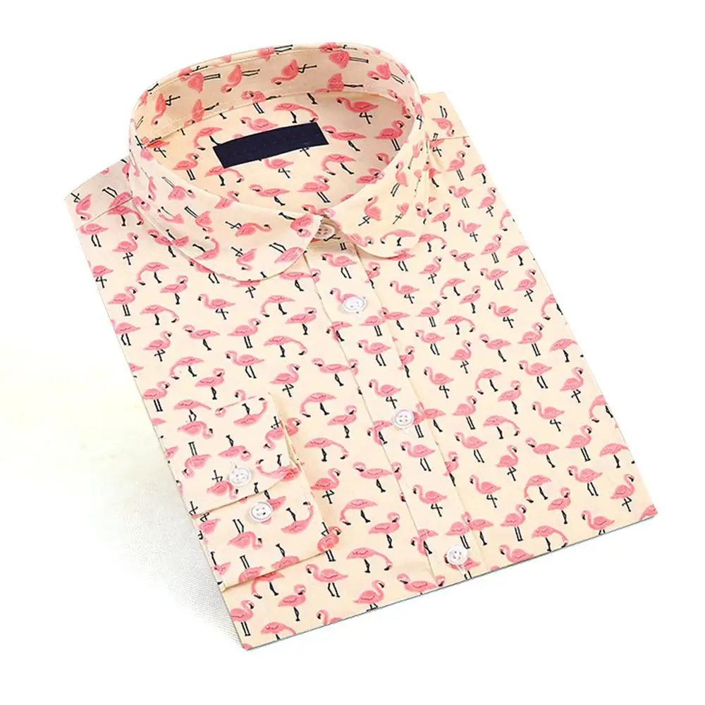 Женская блузка в горошек Dioufond, хлопковая рубашка с длинными рукавами и фламинго, рубашка с отложным воротником, топы, модная женская одежда