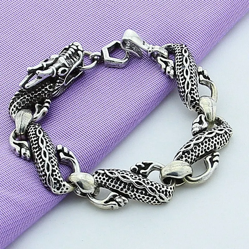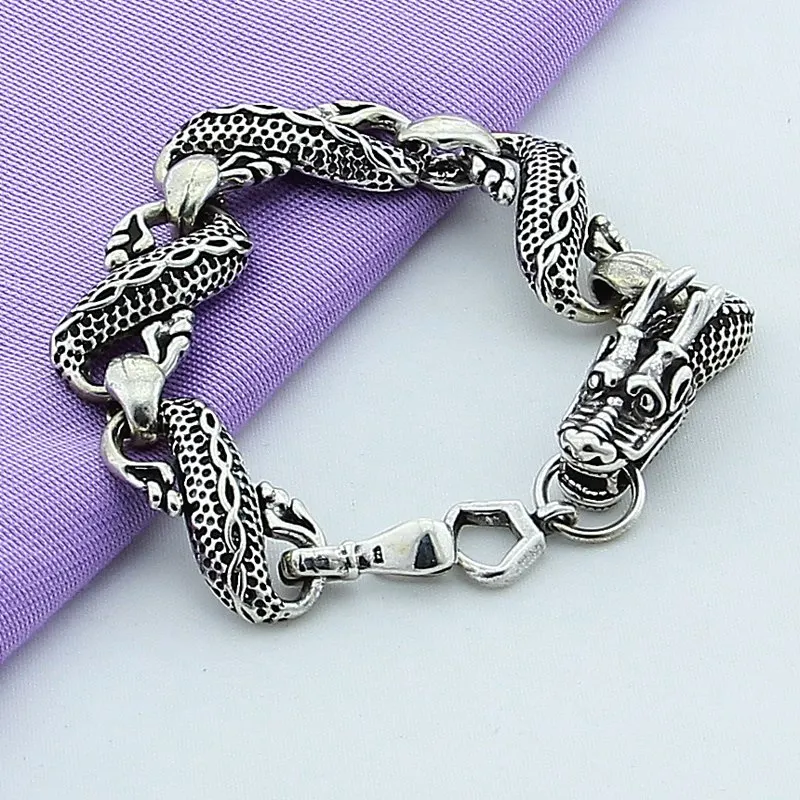 Классические винтажные браслеты из серебра 925 пробы с черным китайским драконом, мужские ювелирные изделия высокого качества