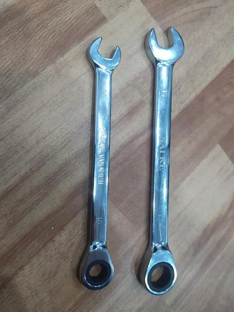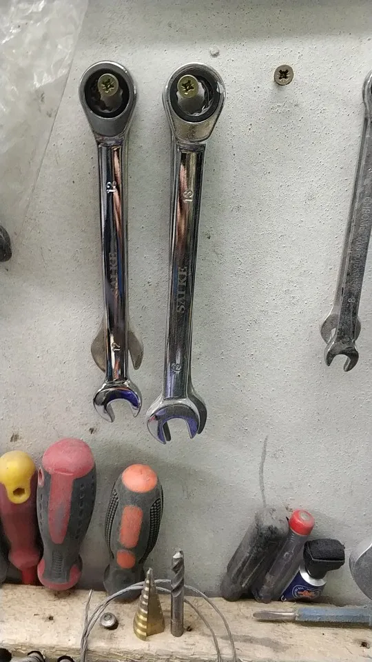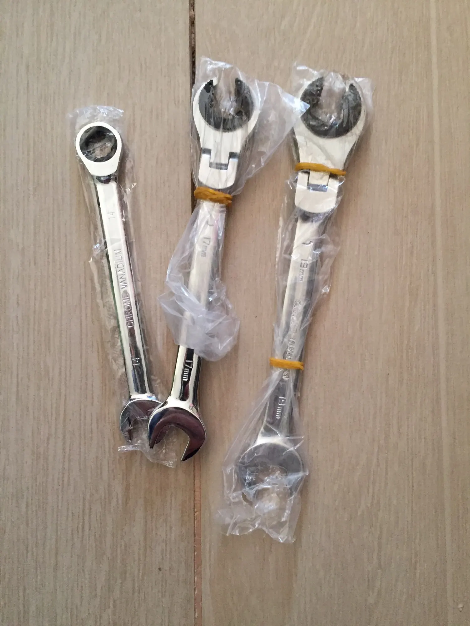 Ключи получил уже все в царапинах и даже вмятины имеются на ключах. Но свою работу выполняют ключи. Пытался затянуть гайку и ключик на 17 заклинил. Разработал механизм и всё нормально теперь работает. Теперь понятно что трещеткой затягивать плохая идея.