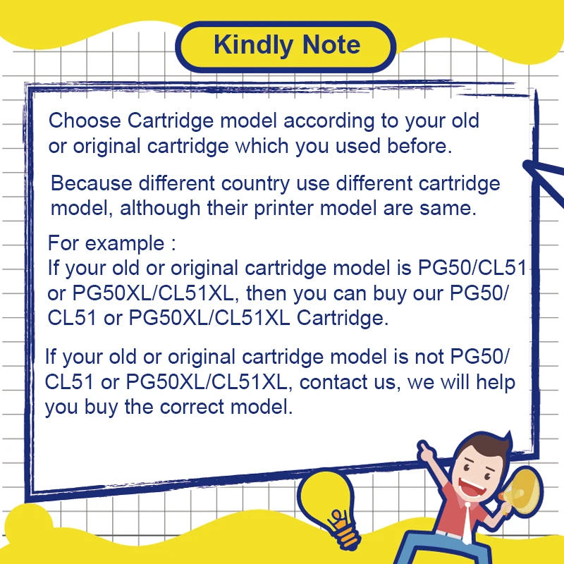 Cartridge numberFor Canon PG-50 BK for CL-51 Tri-Color