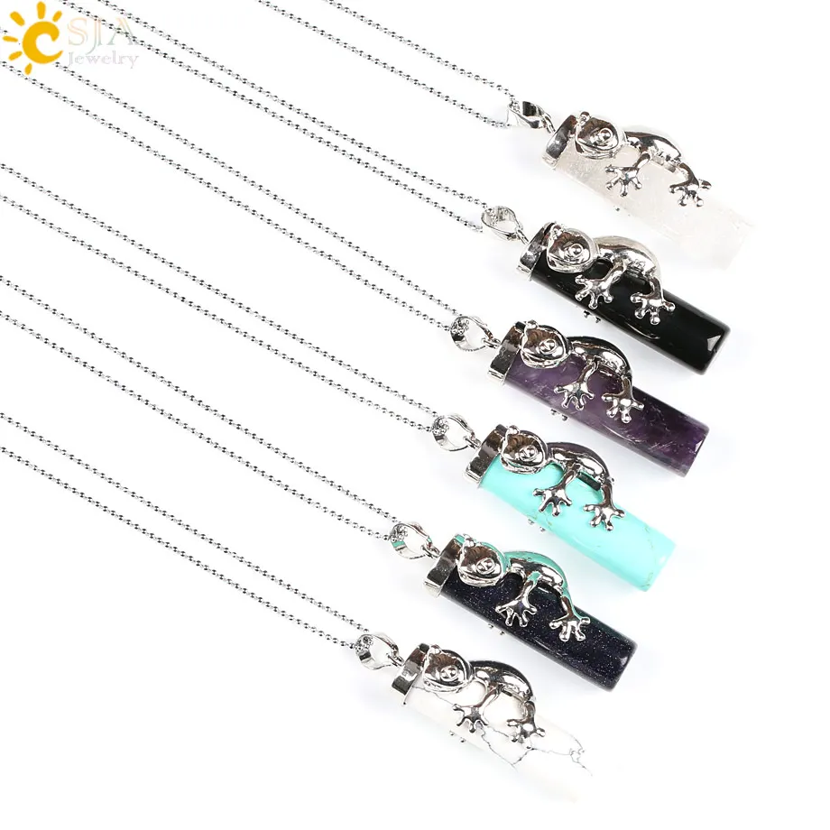 CSJA, модное, розовое, кварцевое, с драгоценным камнем, мощное, массивное ожерелье для мужчин и женщин, ювелирное изделие, натуральный камень, кулон, прекрасная лягушка, ювелирное изделие E184