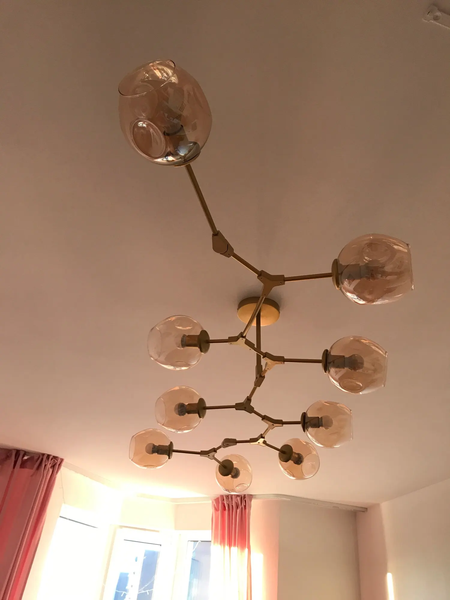 Огромная благодарность продавцу! Ответственный продавец, который быстро решил наши проблемы. Нам приехали 4/9 битые плафоны! Но продавец согласился отправить нам снова целые. Всё приехало! Плафоны очень хрупкие, нужно быть крайне аккуратными при установке и уборке. На люстру страшно даже дышать) но выглядит эффектно. Так же есть дизбаланс между частями люстры, т.к. на одной стороне 5 плафонов, на другой 4. В комнату 17кв.м советую меньше плафонов, но сразу самостоятельно купить яркие лампочки. Те, что с люстрой слабенькие, даже с 9 плафонами было тускло, заменили лампочки и всё стало ок.