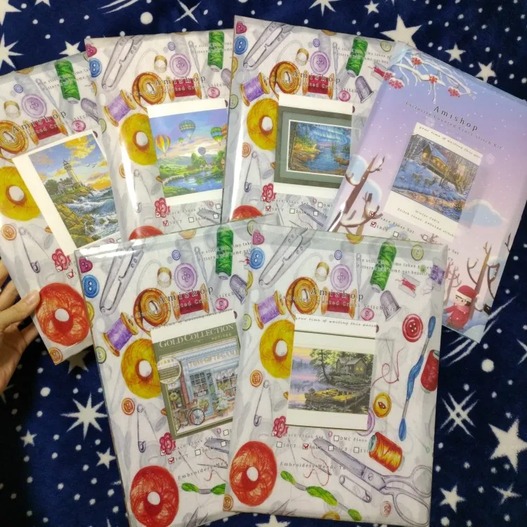 100% хлопковая нить, холст Aida, иглы, бумажная Таблица (Инструкция на английском языке, цветная печать, размер А4/страница)