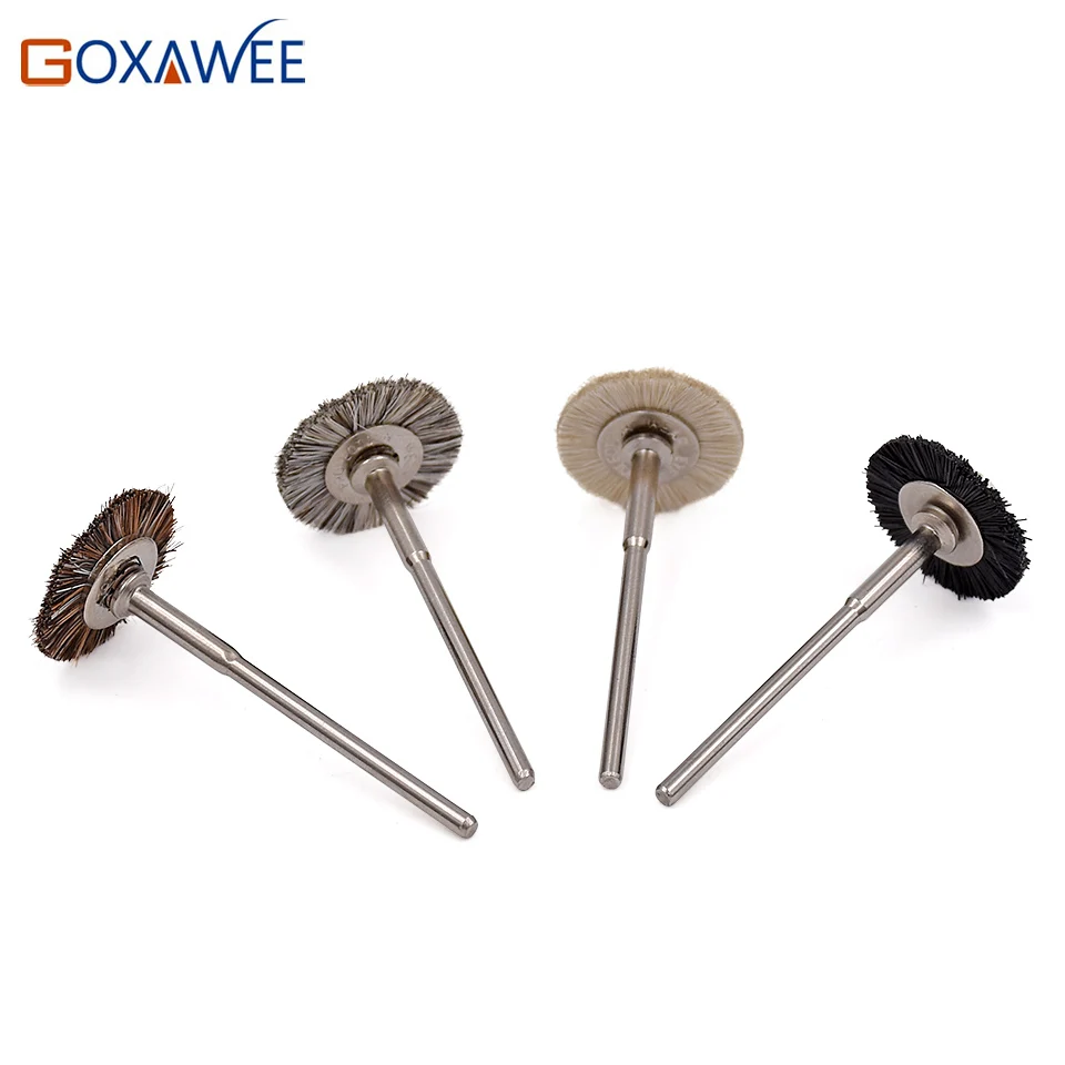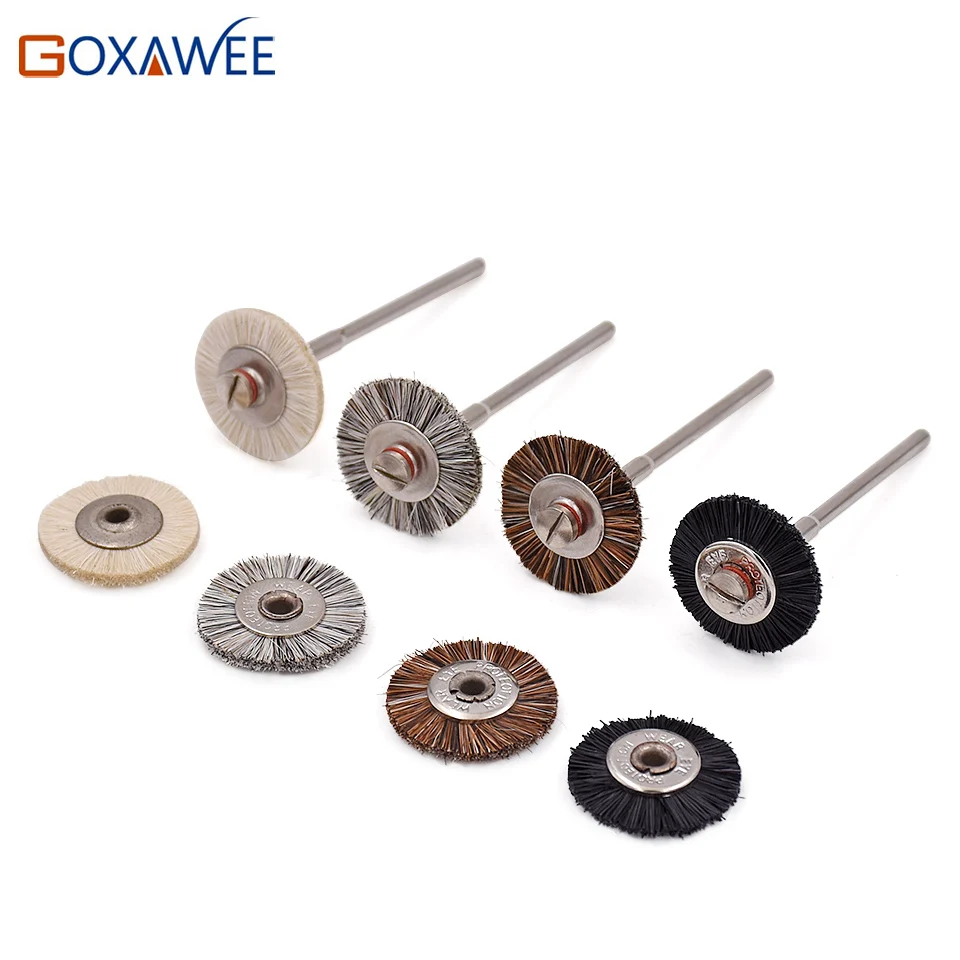 GOXAWEE 10pcs Abrasive Tools Brush Dremel Tool Accessories Polish Brush Mini Unmounted Abrasive Brush Wheel 19mm & 2pcs Mandrels