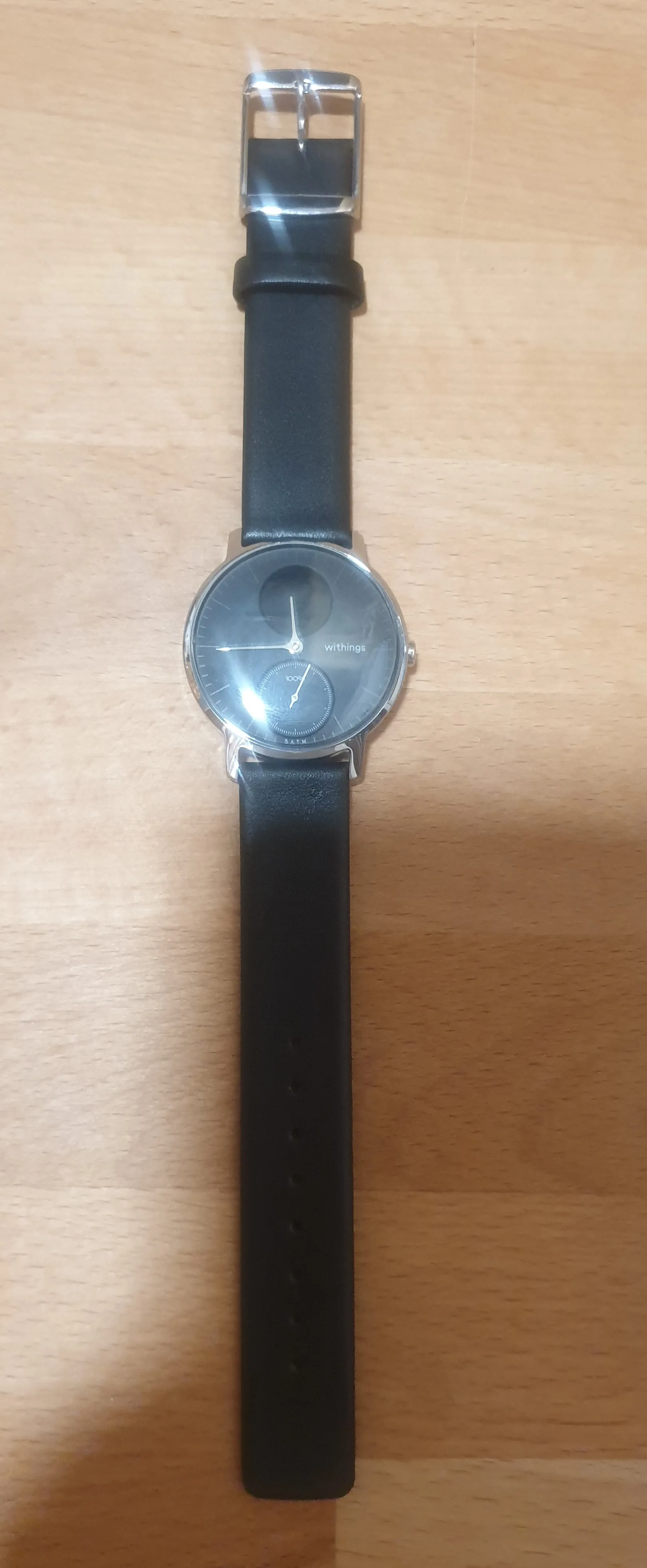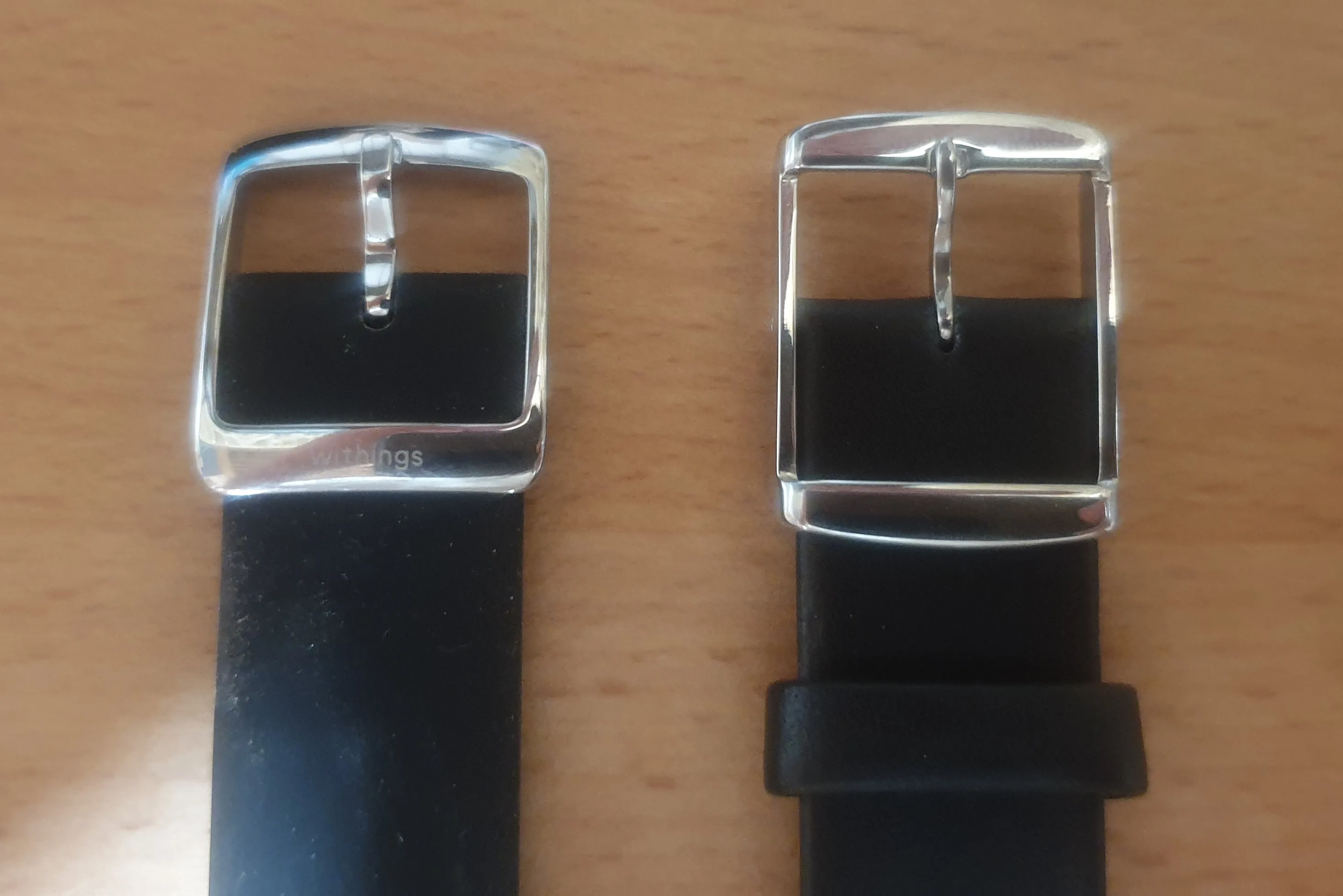 Le bracelet est de bonne qualité, je le porte depuis 1 mois 1/2 et le cuir n'est pas du tout abîmé, rien ne se décolle, j'était sceptique vu son prix, mais il tient bon ! J'aime son design très proche de celui du bracelet original Withing, par contre il est quand même plutôt rigide, difficile à fermer, mais heureusement, je ne retire pas la montre souvent ! Je pensais qu'avec le temps cela s'améliorerais, mais non, toujours aussi rigide. .. Après vu le prix faut pas trop non plus demander :) Plus court que le bracelet Withing, mais ça passe pour les petits poignets. Reçue rapidement en 17 jours !