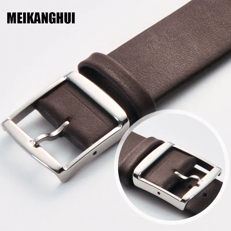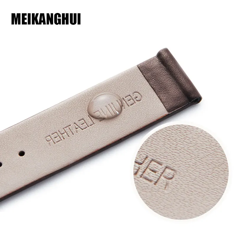 Ремешок для часов MEIHANGHUI, кожаный, черный, темно-коричневый, 16 мм, 18 мм, 20 мм, 22 мм, 24 мм, сменный ремешок с пряжкой полированный контакт