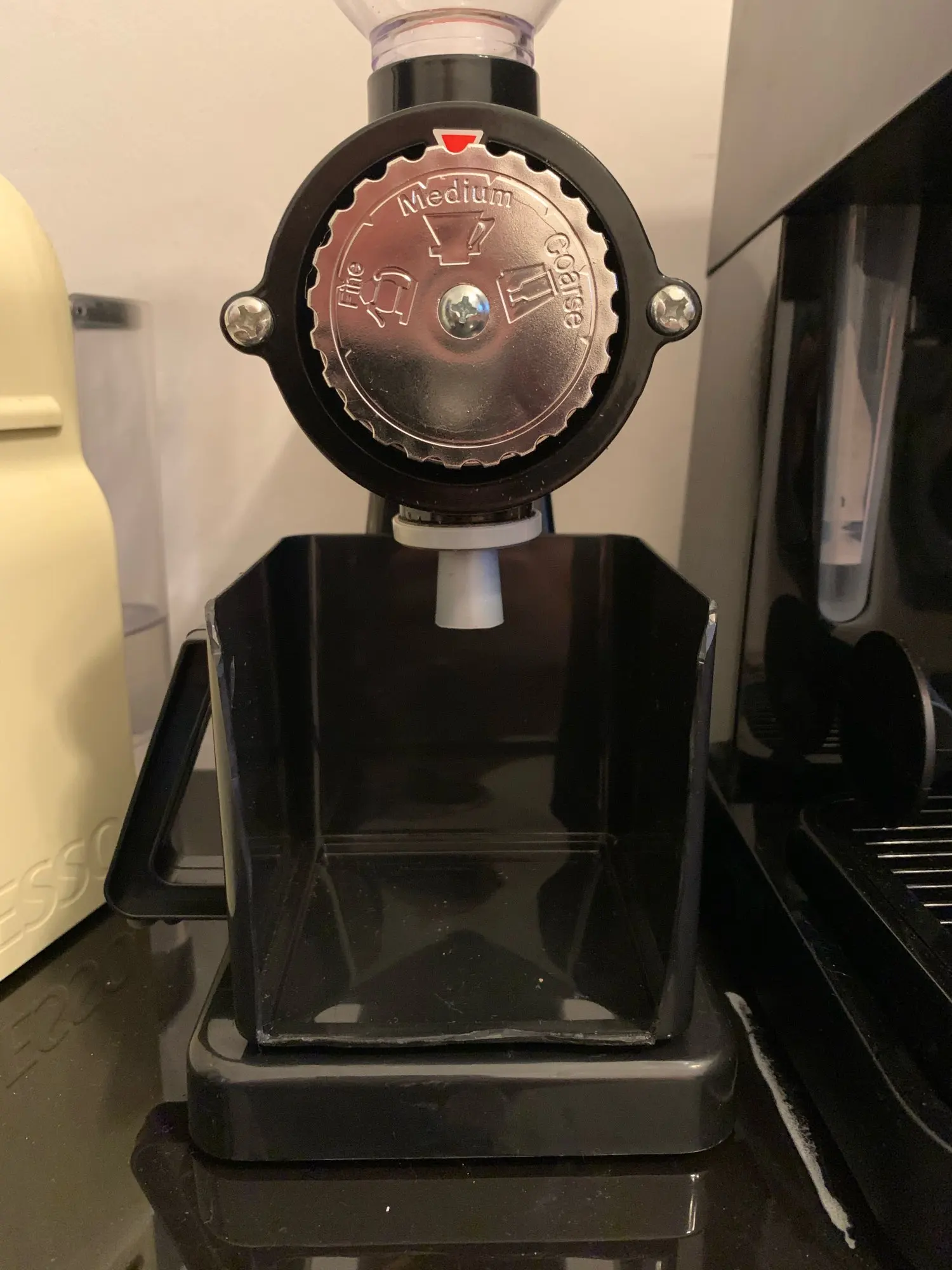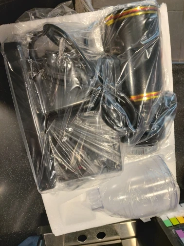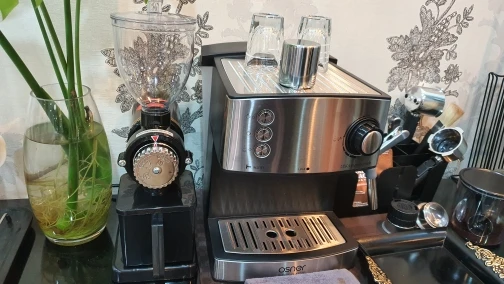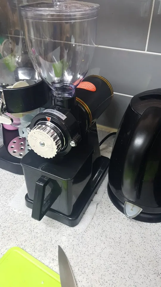Супер скорость. До Перми 3.5 дня. Машина рабочая. Сразу сделал регулировку. Мелкий помол делает, все равномерно, но настройка прямо очень чувствительная. Буквально касание, и время пролива на эспрессо в результате меняется очень сильно. Между затыком и правильными 35 мл буквально 1мм по шкале. Со стабильностью результата на кофеварке тоже все очень сложно, ее нет. С разравнивателем и нормальным темпером и постоянным весом таблетки, результат на выходе всеравно скачет. Пластиковый контейнер для молотого можно просто выкидывать, просто чушь. Благо очень удобно молоть прямо в холдер. Кофемолка прямо конструктор из разряда доработай сам. У кого есть голова и доступ к металлообработке, сходу появляется куча идей, типа увеличить тонкость регулировки помола, увеличить жесткость жерновов, мелочи чтоб не разлетался кофе и тп. В целом за свои деньги прямо очень достойно. Внешний вид только не совсем вписывается в кухню.