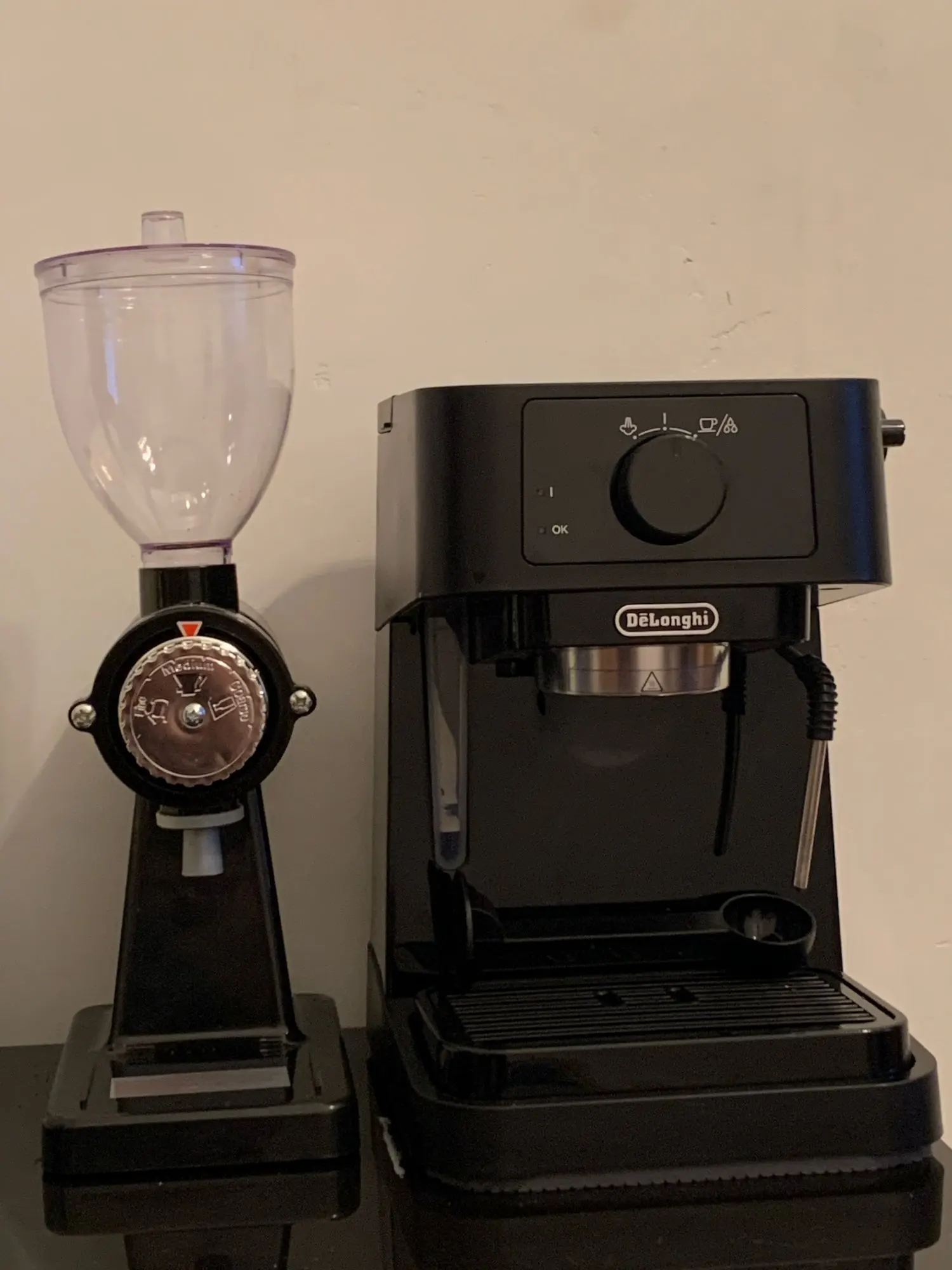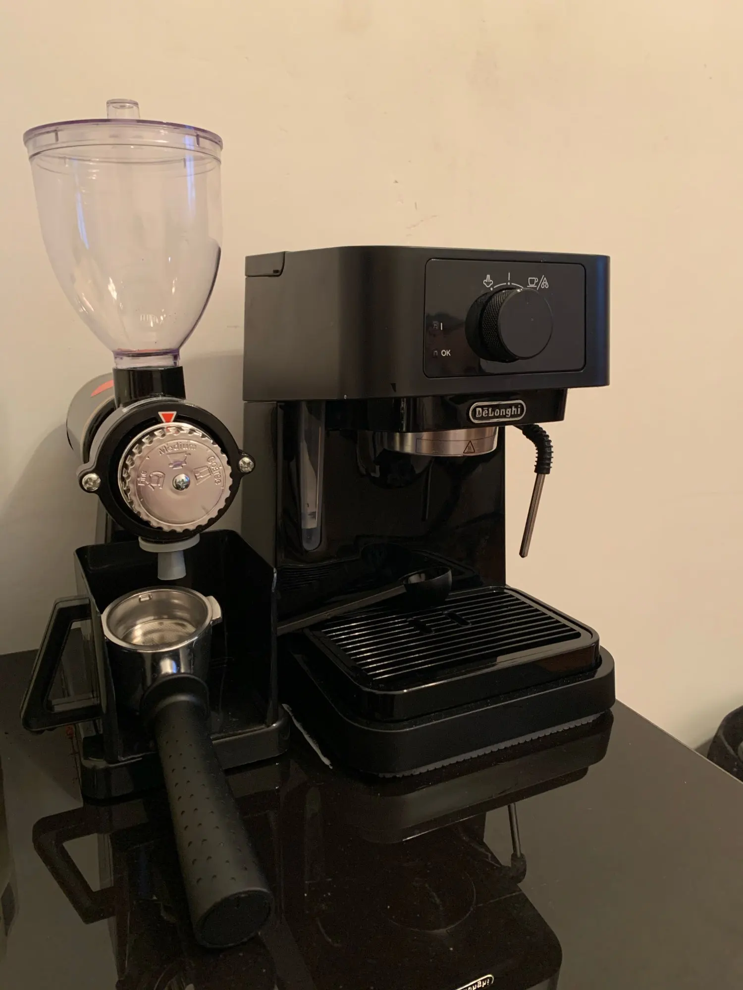 мельничка огонь. не очень просто отрегулировать нужный помол. На минимуме трет в пыль, еспресо машина такое не продавливает у меня.
