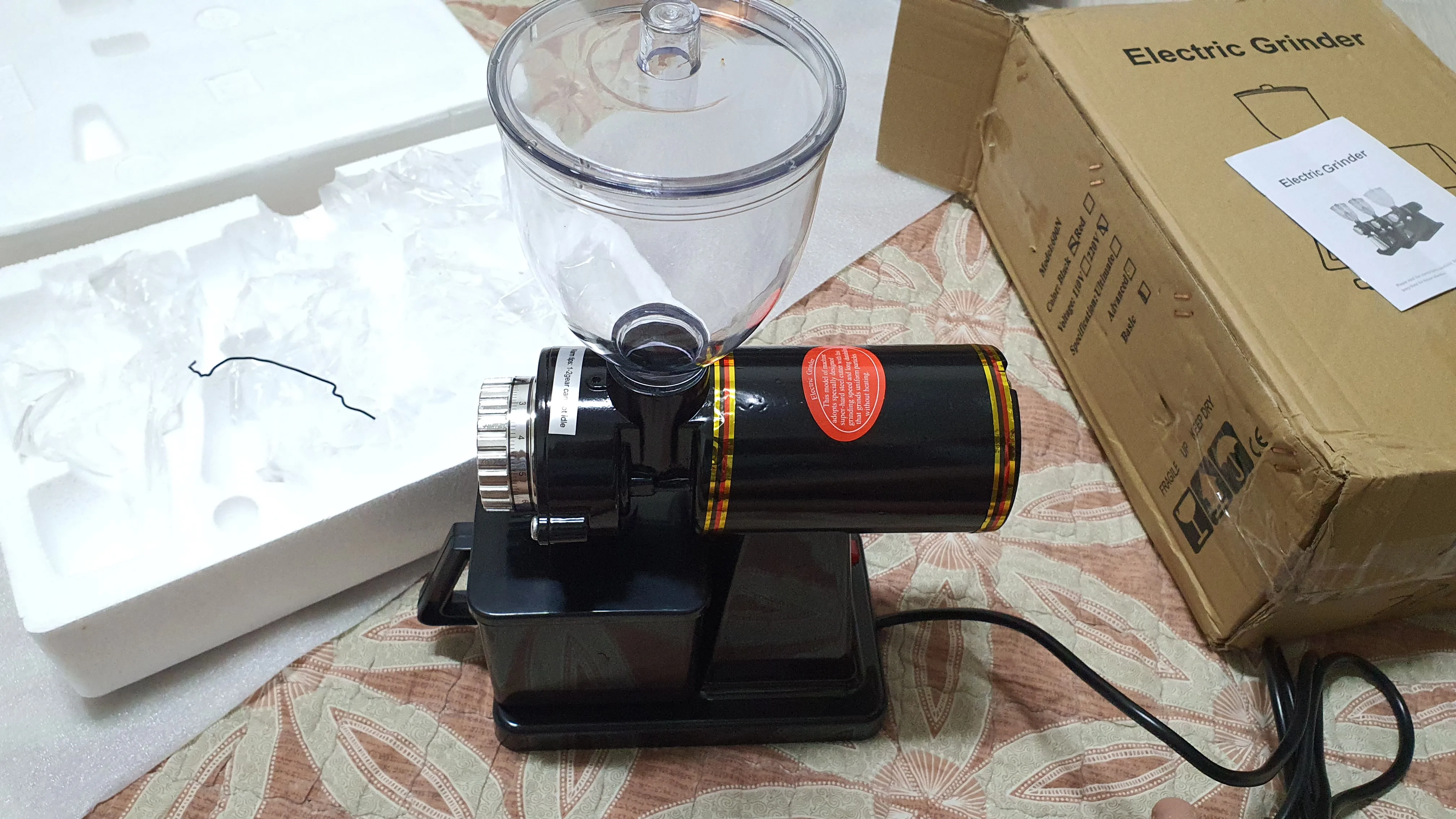 Отличная машина! Очень быстрая курьерская доставка IML из Москвы, меньше недели. Курьер позвонил, согласовали время, всё чётко. К сожалению, пластиковая крышка бункера для молотого кофе пришла уже с трещиной, продавец после переписки отправил нужную деталь из Китая, будем ждать. Искал кофемолку с жерновами, которая может смолоть кофе в пыль, для турки - нашел! Отличная идея разместить магнит вокруг горлышка, из которого выходит молотый кофе. Ничего не рассыпается. Рекомендую продавца.