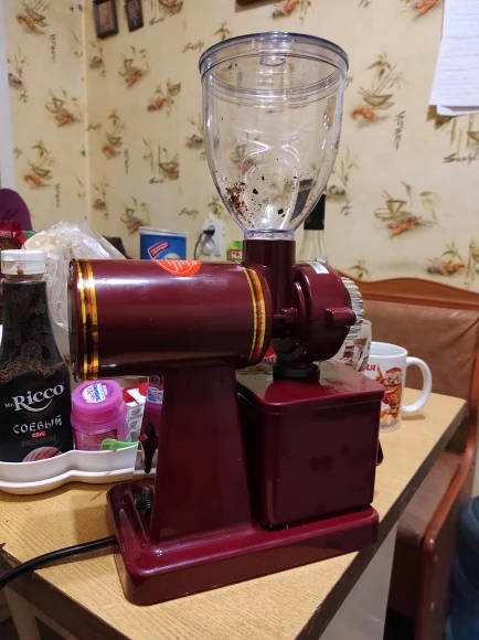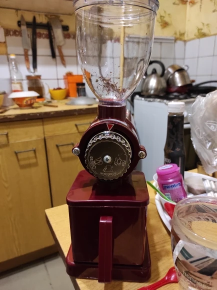 Пришла за несколько дней курьером на дом. Мелкая, но тяжелая, не ерзает. В первый раз легко разобрал и промыл, мелет для эспрессо (корзина без улучшайзера, без клапана). Для помола в рожок вставил кончик пластиковой воронки в сопло и отпилил стенку у контейнера (иначе кофе разлетается). Спасибо продавцу!