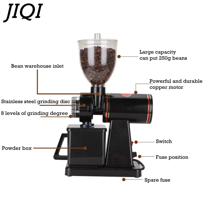 JIQI электрическая кофемолка, мельница для зерен, плоская шлифование заусениц машина, 220 В110 В, красныйчерный, ЕС, США