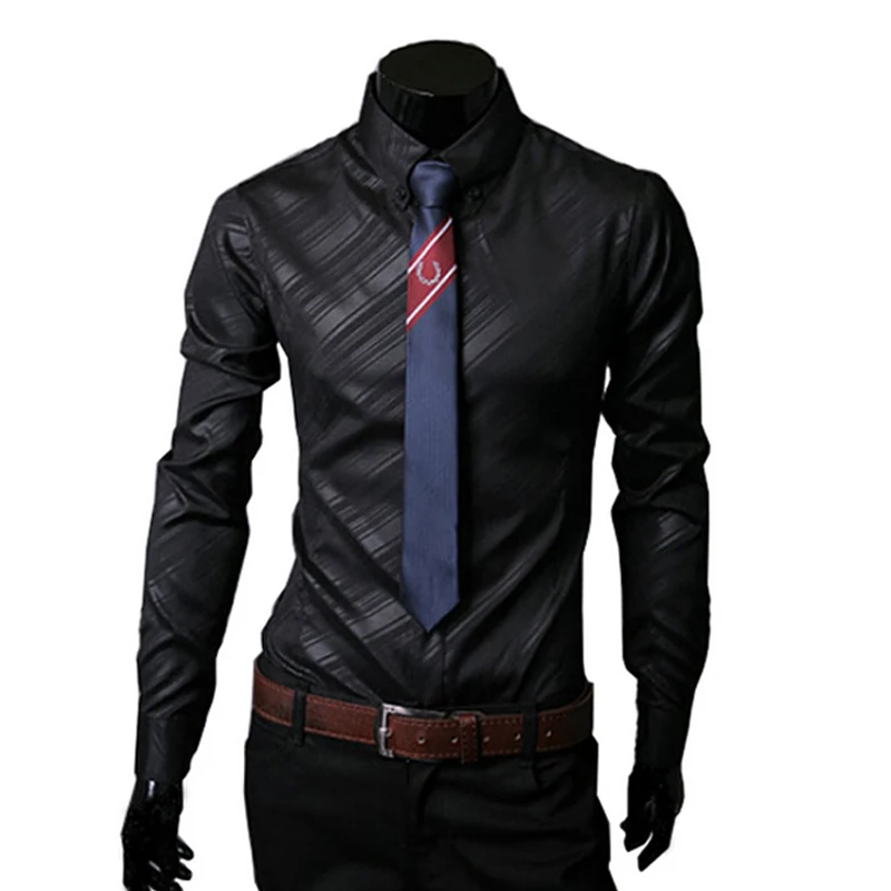 Рубашка мужская с длинным рукавом, приталенная сорочка в полоску, Повседневная Деловая белая, Рождественская одежда
