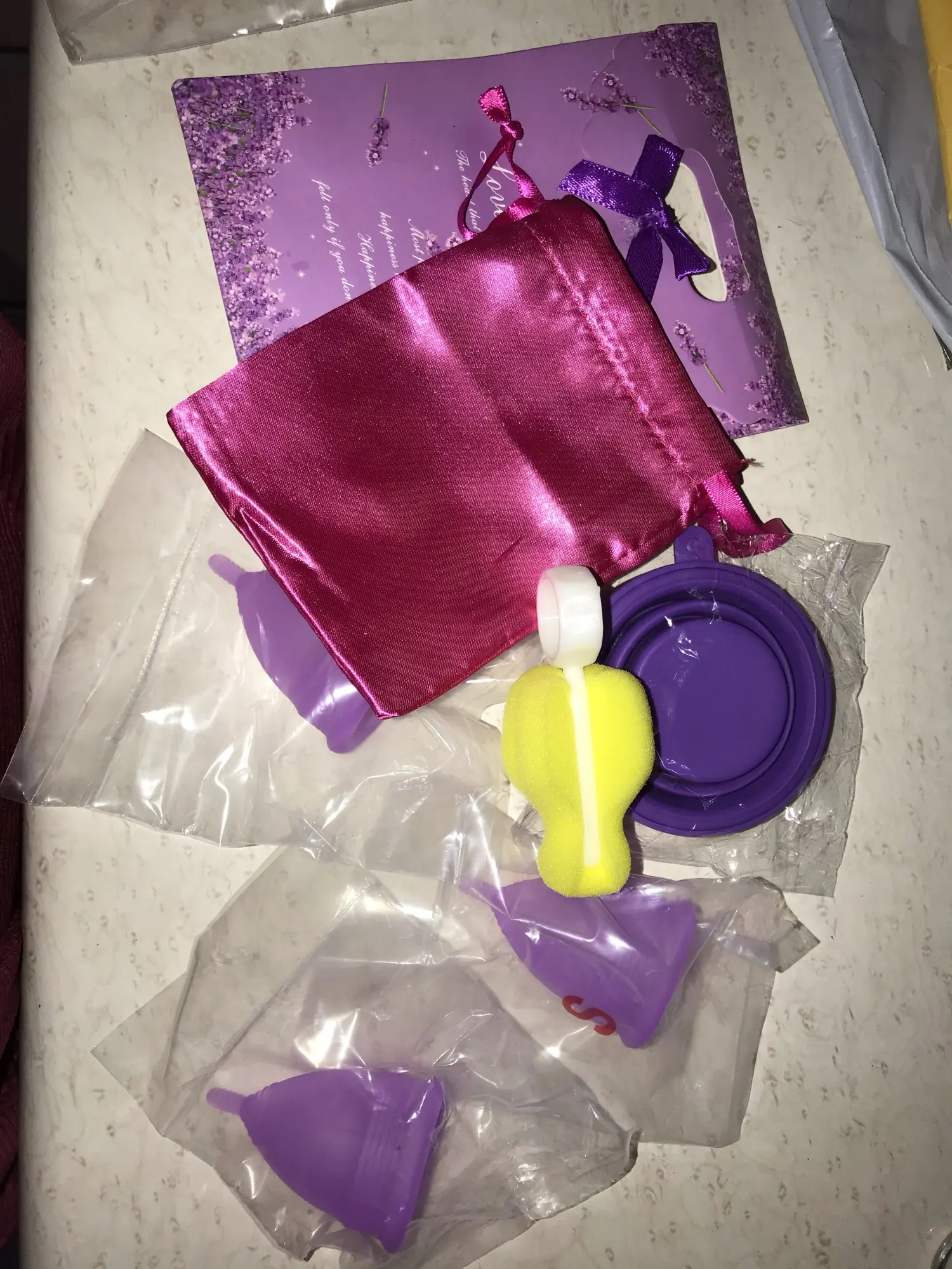 Как правило, товар очень хорошо упакован, это мой первый раз, когда я заказываю менструальные чашки, поэтому я узнаю, что происходит при их использовании. Посылка пришла полной и заняла долгое время, это было около месяца в Мексику Я думаю, я попрошу больше своих друзей, продукт выглядит и кажется очень хорошим качеством, он мягкий и пластиковый, это твердая вещь, которая хороша, инструкции говорят, что это медицинский пластик, Я надеюсь, что так В общем, я доволен заказом Я купил размер для девочки, надеюсь, это идеальный вариант