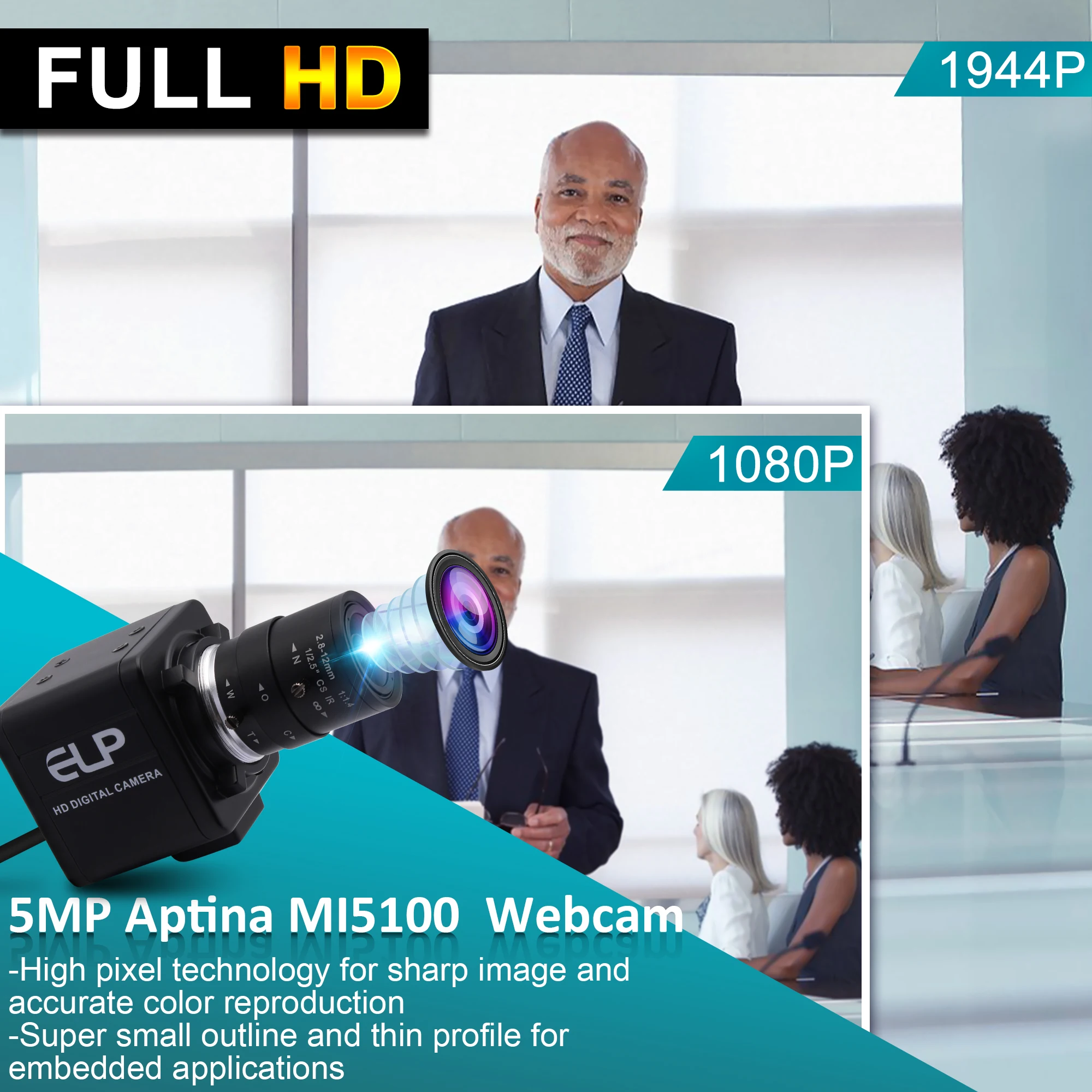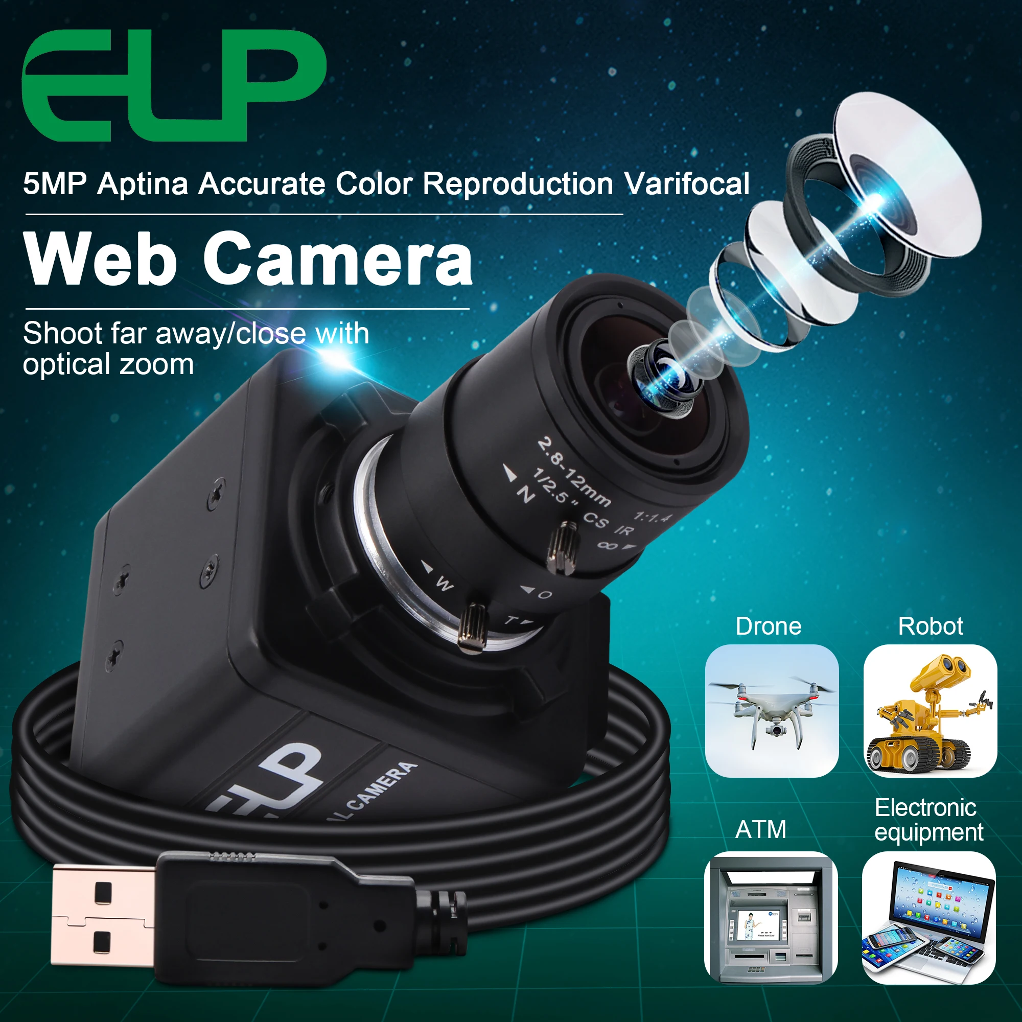 ELP 5MP Aptina MI5100 USB чехол для камеры наблюдения Android Linux высокое качество UVC веб-камера с 5-50 мм варифокальным объективом