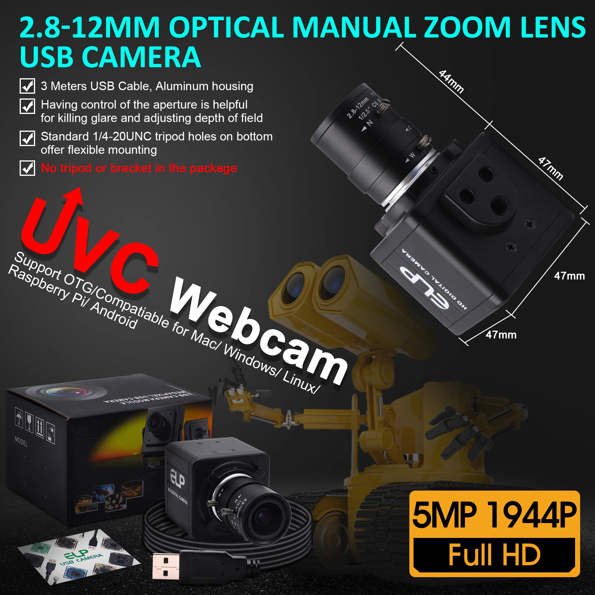 Камера видеонаблюдения ELP 5 Мп Aptina MI5100, корпус с USB, UVC веб-камера с варифокальным объективом 5-50 мм для Android и Linux