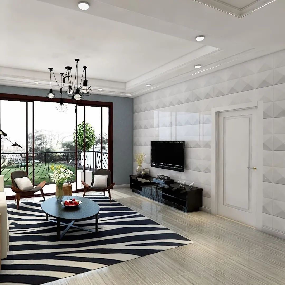 3D ПВХ стеновые панели-это новый трехмерный внутренний материал для отделки стен, который предлагает драматическую альтернативу традиционным плоским стеновым панелям. Он широко используется для коммерческих и жилых помещений. Панель имеет широкий спектр применений. Его можно использовать в качестве небольшой фоновой стены или в большой особенной стене. Основные характеристики стеновых панелей 3d-это элегантная эстетика, огнестойкость, водонепроницаемость, вес и легкий DIY светильник.