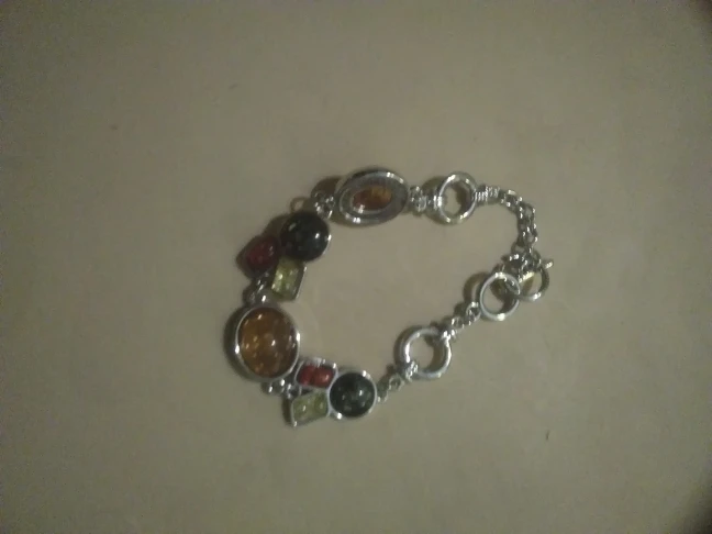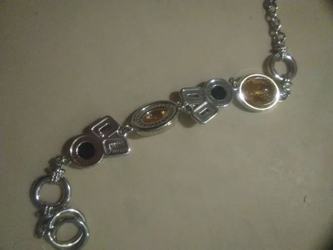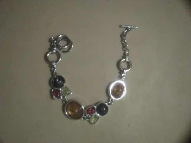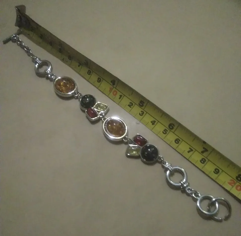 Сам браслет выглядит очень хорошо, у меня есть похожий, уже 2 года ношу (конечно не каждый день), и он до сих пор в хорошем состоянии, металл похож на хирургическую сталь. Брала для сестры, у неё полная рука, на запястье 19-20 см застегивать очень трудно, пришлось нарастить звено, так как браслет ей очень понравился. Смотрится действительно хорошо, у неё похожие серьги из янтаря, получился гарнитур, хотя в браслете конечно не янтарь, но выглядит неплохо.
