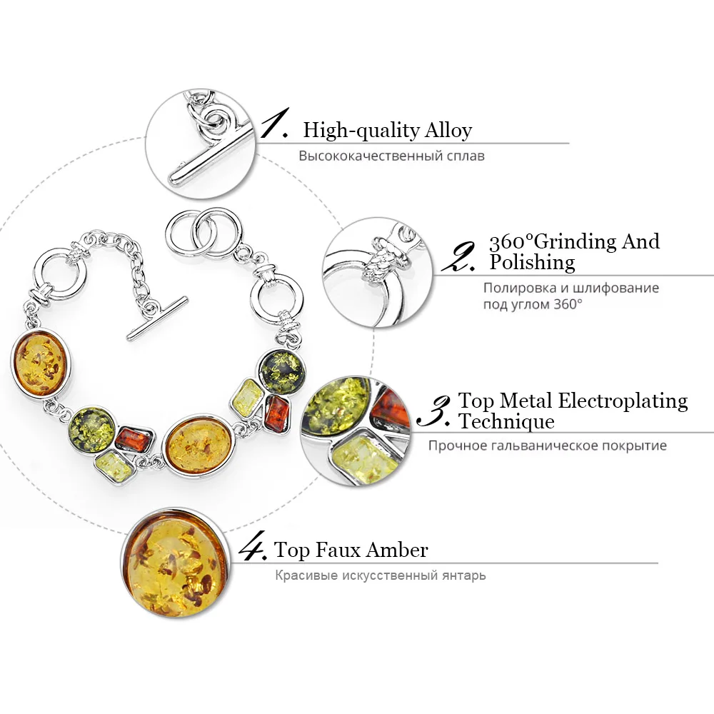 Шарм Овальный Круглый Синтетический мед прибалтийские браслеты и браслеты звеньевая цепочка разноцветные браслеты для женщин L83601