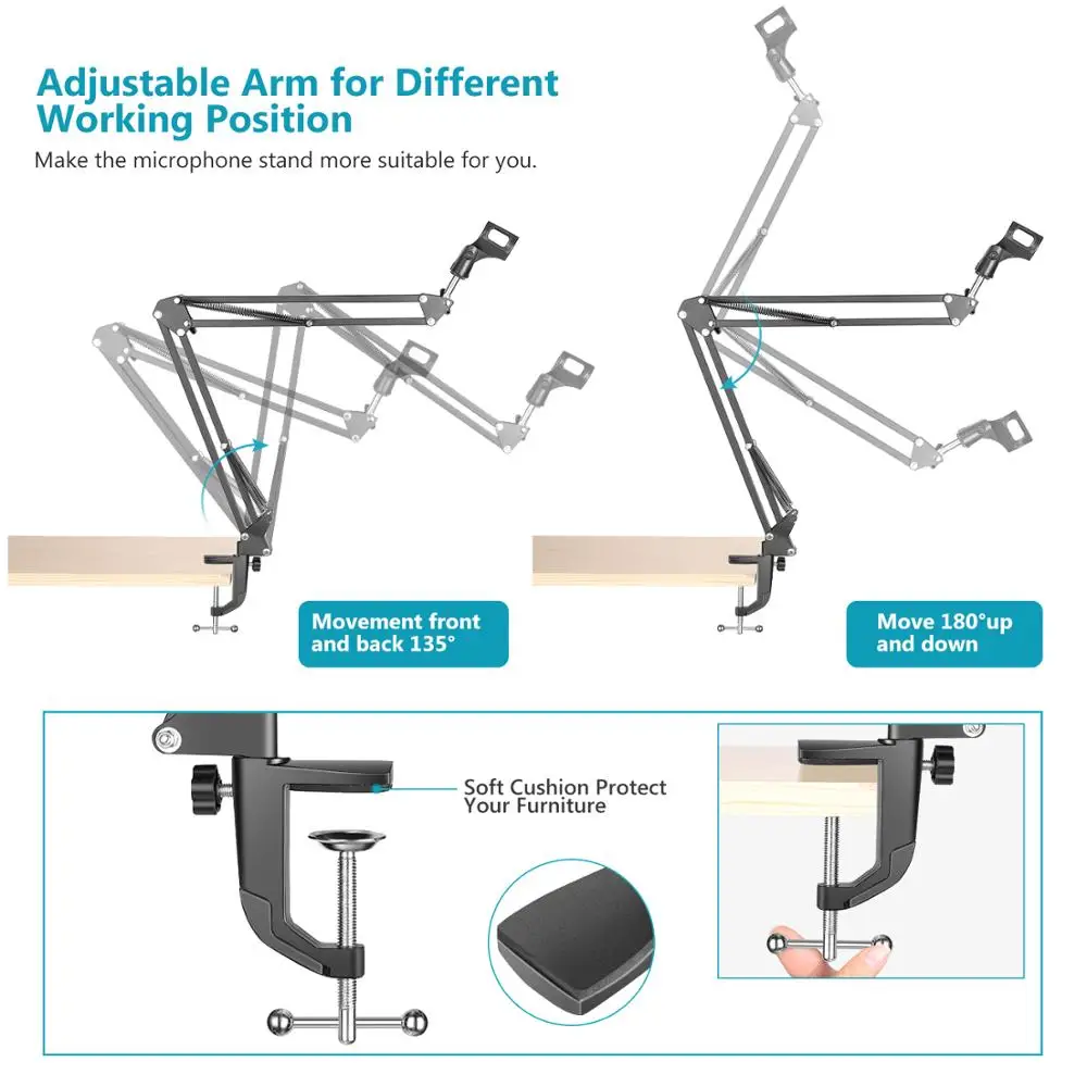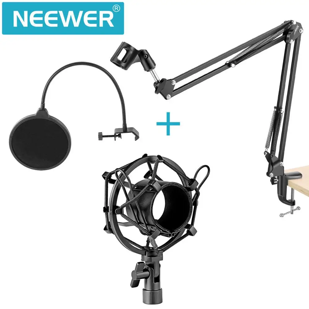 Комплект для микрофона Neewer NB-35, ножничная подставка, держатель для микрофона с зажимом, зажим для крепления на столе, поп-фильтр щиток для ветрового стекла, металлическое Крепление