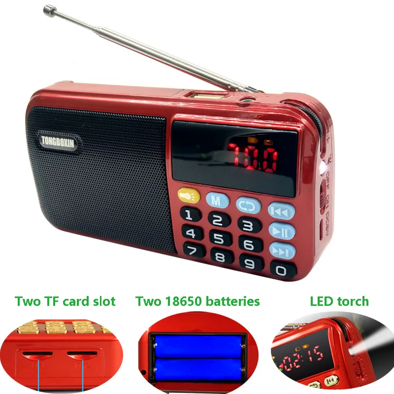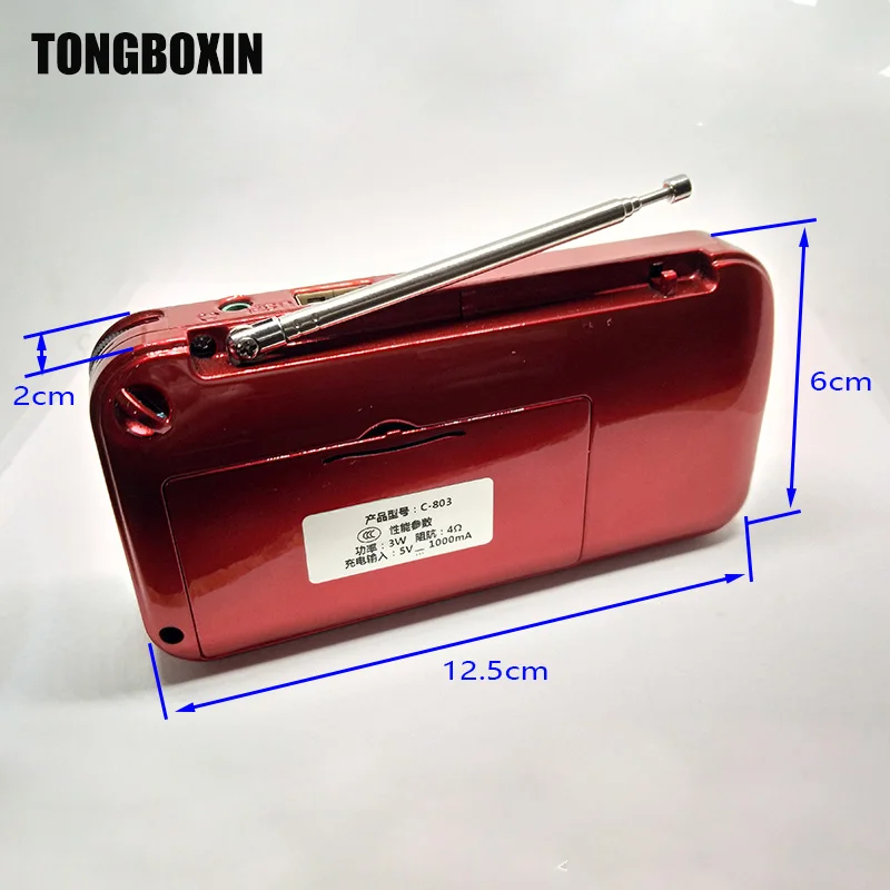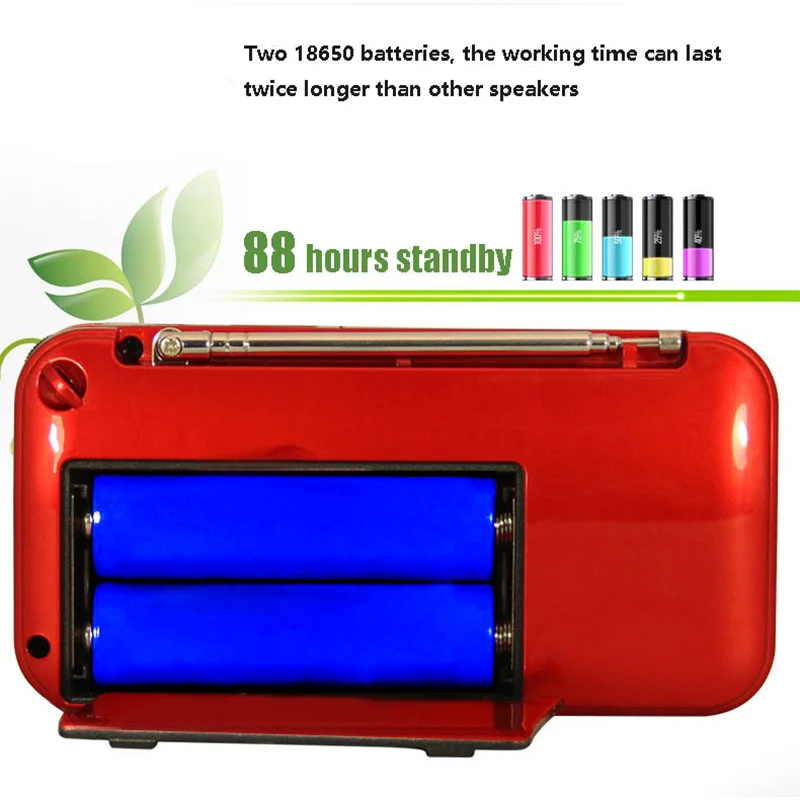 Портативное FM-радио C-803, с двумя аккумуляторами 18650, светодиодным фонариком и двумя слотами для карт TF, беспроводной USB-динамик, MP3-плеер