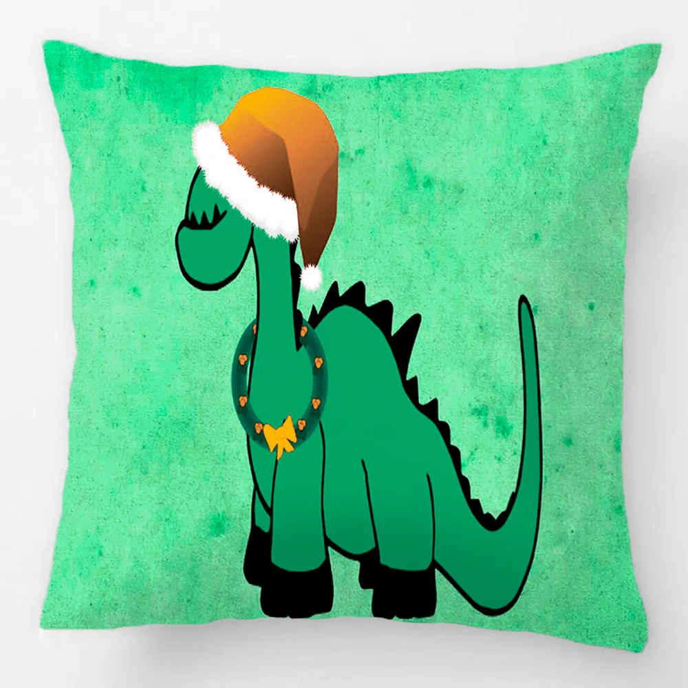 Праздничный зеленый динозавр, чехол для подушки, декоративная наволочка, наволочка, чехол для подушки, подарок на заказ, высокое качество от Lvsure для дивана Материал:50% хлопок 50% полиэстер;50% хлопок 50% лен