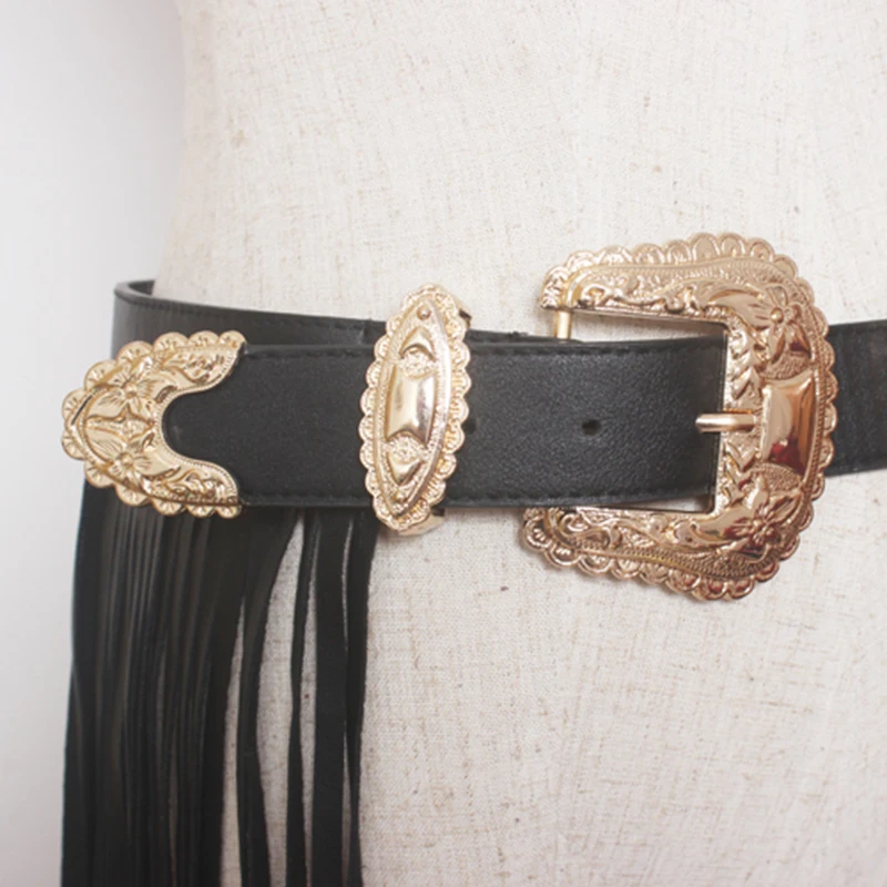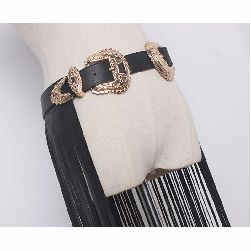 Ремень женский из искусственной кожи с золотой пряжкой, длина 105 см, цвет в ассортименте