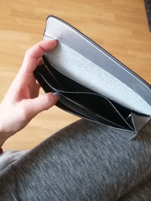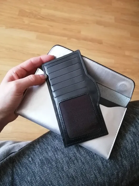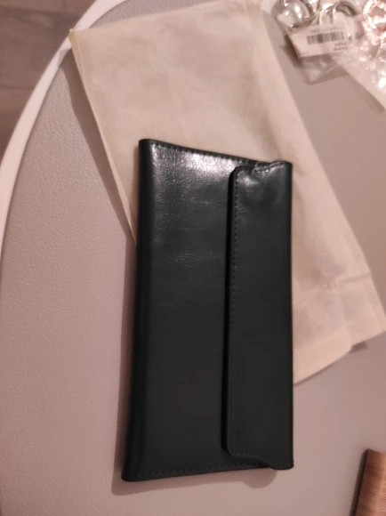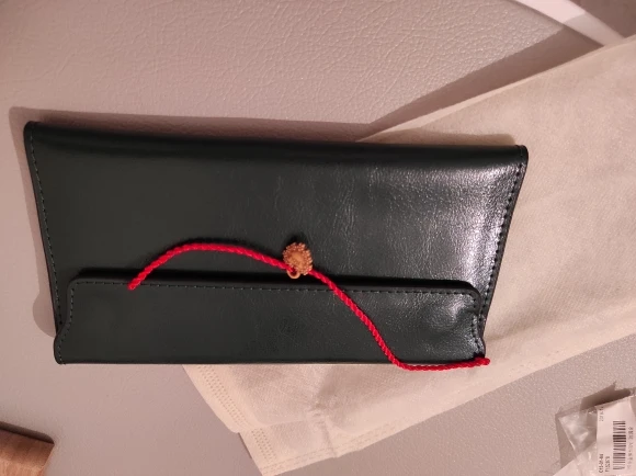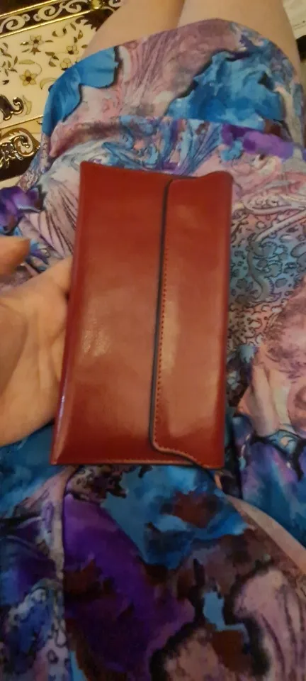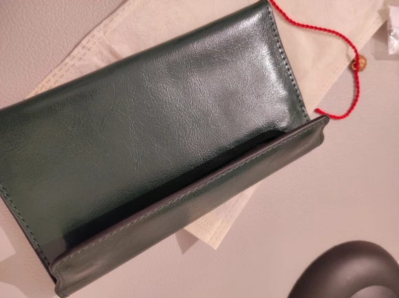 заказывала 2 кошелька в бордовом цвете, они были отличного качества. но этот третий черный пришел с маленькими дефектами на лицевой стороне и качество материала хуже. грубее, тяжелее, есть запах явно ощутимый, у первых двух не было.