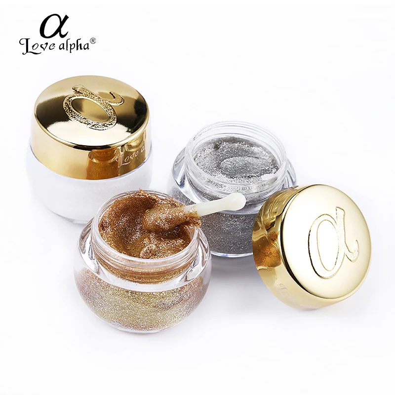 Блестящие тени для век Love Alpha, гель с металлической пудрой, пигментные духи, сияющая косметика, 3D макияж глаз, хайлайтер, кремовая палитра