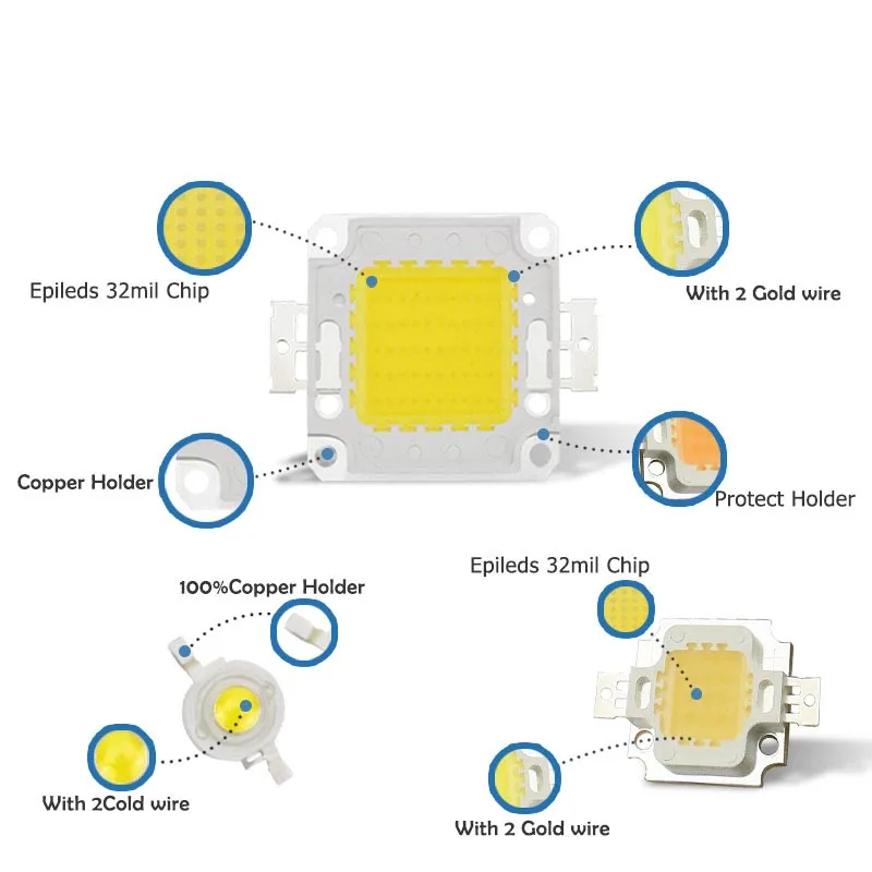 Светодиодный чип высокой мощности, 1 Вт, 3 Вт, 5 Вт, 10 Вт, 20 Вт, 30 Вт, 50 Вт, 100 Вт, светодиодный чип COB, естественный белый 4000K - 4500K для самостоятельной сборки, светодиодный прожектор