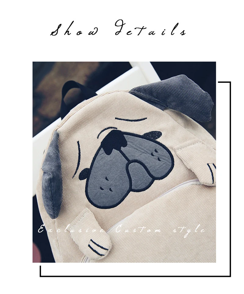 Дамы Холст Школьный рюкзак, 2019 Модный дизайн Ретро вышивка Симпатичная собака и лиса Ушкообразный вельвет большой емкости для колледжа Ветер Подходит для мальчиков и девочек Сумки для ноутбуков
