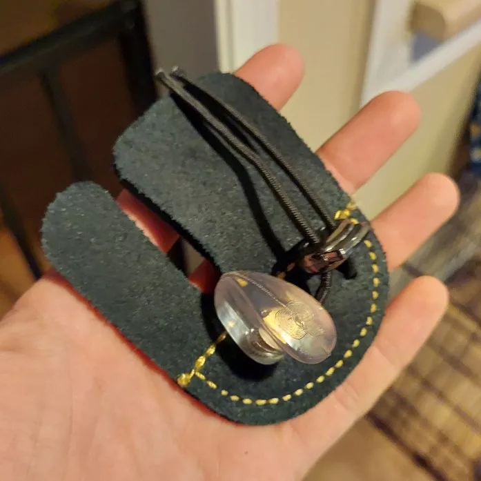 Изображение товара на сайте Продавца's показало, что вкладка пальца имеет два слоя кожи. Вкладка для пальцев, которую я получил, имеет только один слой кожи, как показано на моих фотографиях. Излишне говорить, что я разочарован этой сделкой.