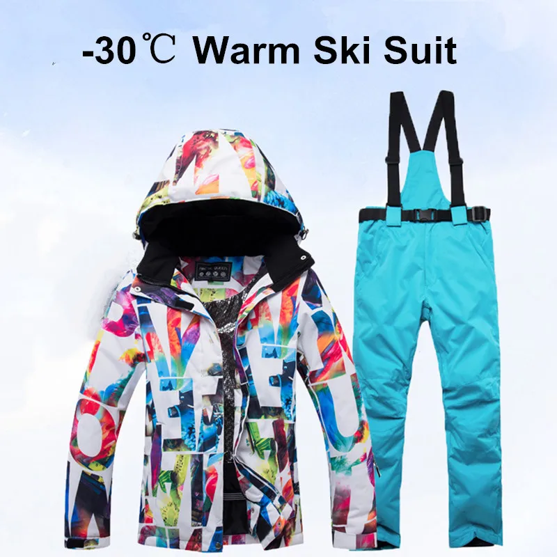 Новинка 2021, ветрозащитный Теплый Лыжный костюм, уличная Женская водонепроницаемая зимняя куртка, штаны, плотный женский лыжный костюм, комплект для сноуборда