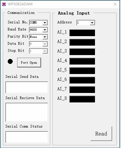 Данные аналогового входного канала 1-«09CE», это будет 2510 после преобразования в десятичные данные. Положите его в формулу: I = DATA * 20/4095 = 2510*20/4095 ≥12.26ma. Ток другого аналогового входного канала составляет 0 мА.