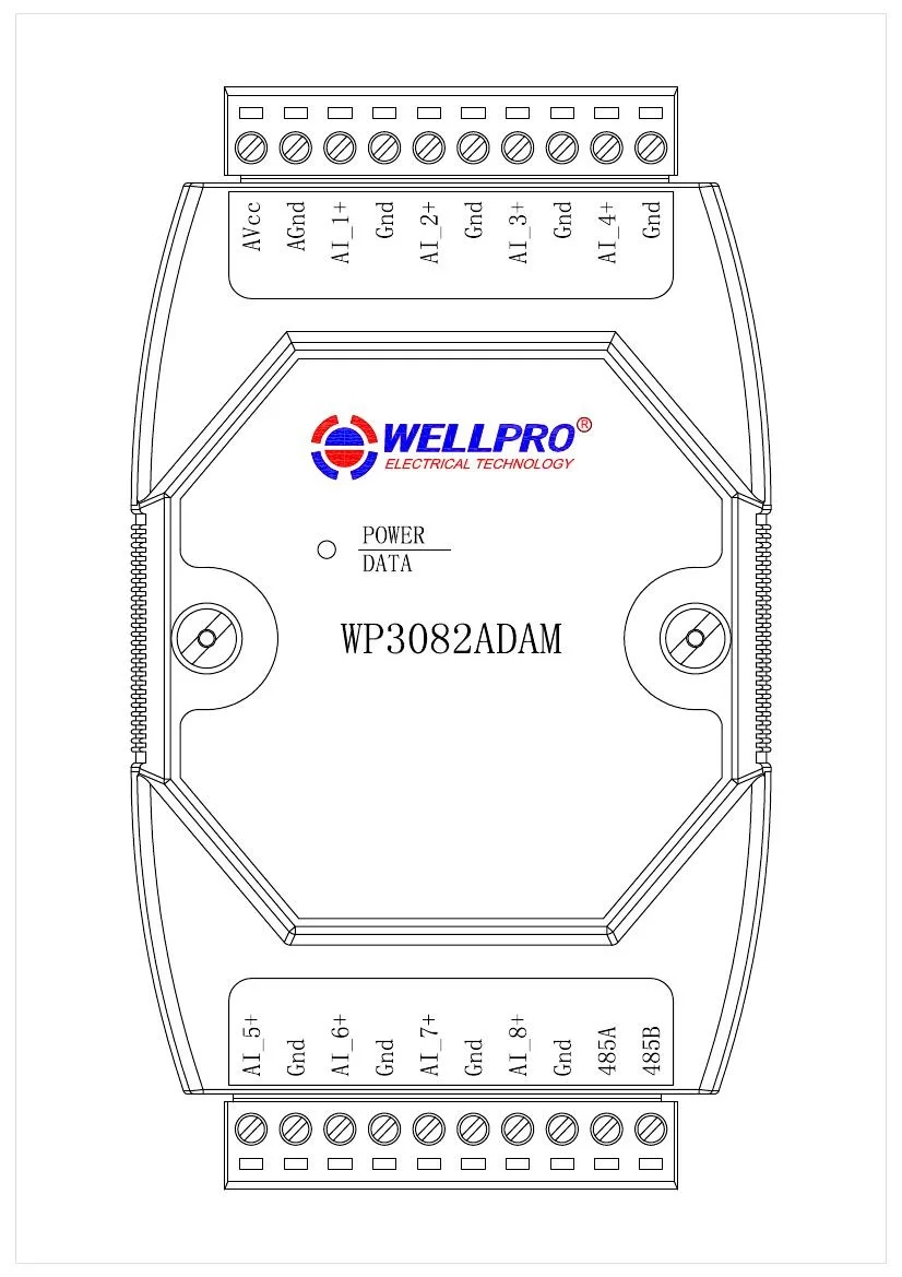 WP3082ADAM ( 8AI ) _ 0-20 мА4-20 мА Аналоговый Входной модульRS485 MODBUS RTU коммуникации