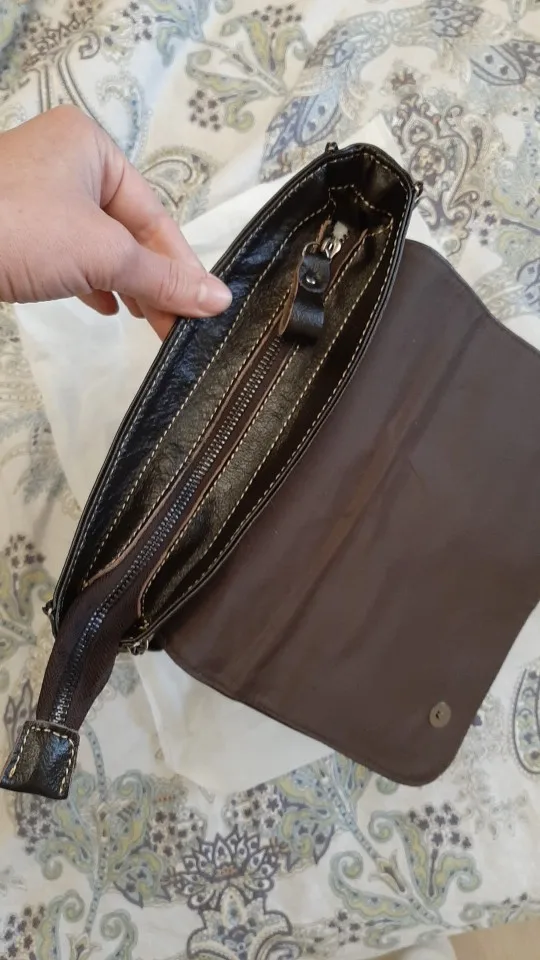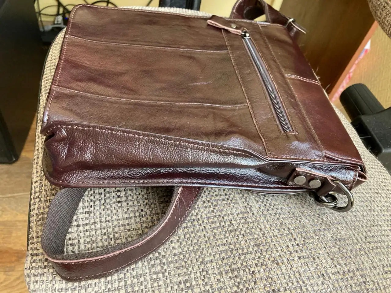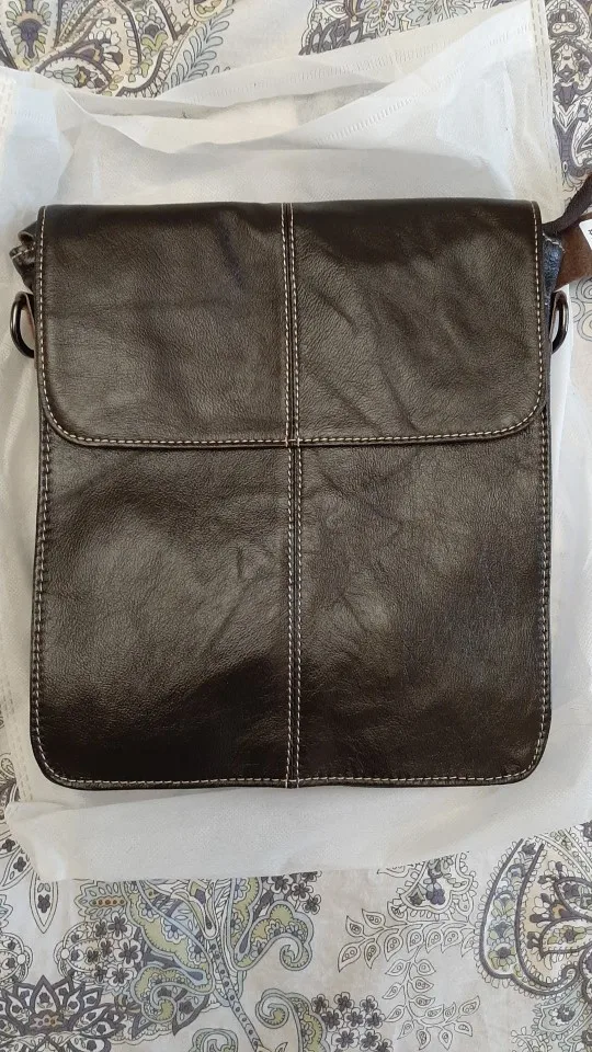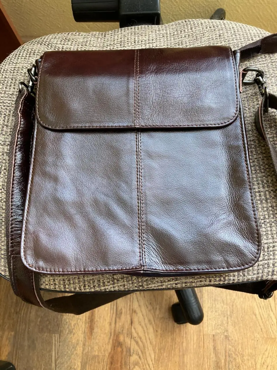 толщина кожи оставляет желать лучшего. брал на замену сумки Остинс - китайская рядом не стоит, вся худенькая, ремешок дешёвый с кожаной накладкой. буду переделывать ремешок от старой сумки. пришла очень быстро, трек отслеживался
