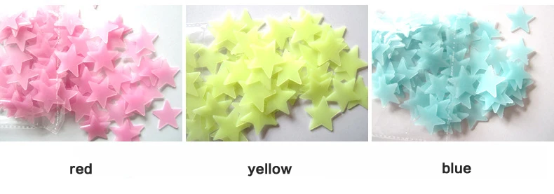 100 шт. 3 см 3D светящаяся звезда Наклейка на стену флуоресцентная ...