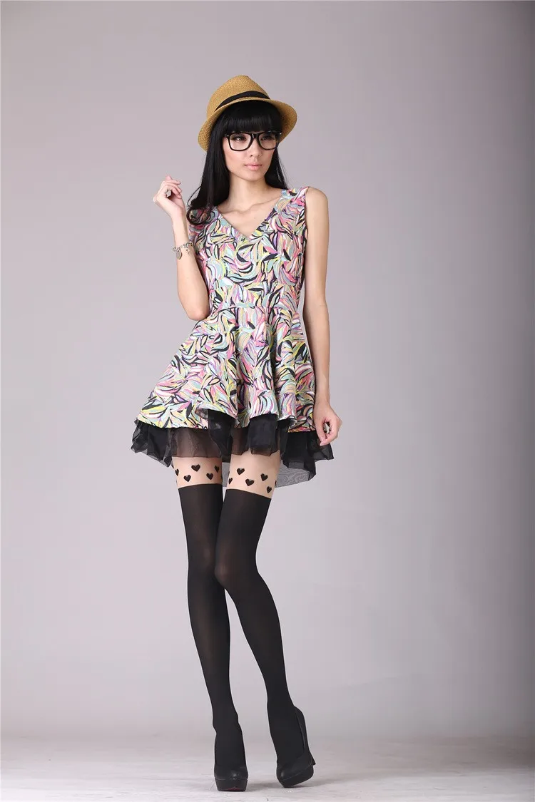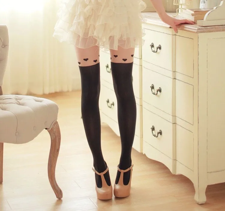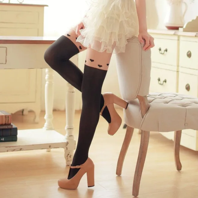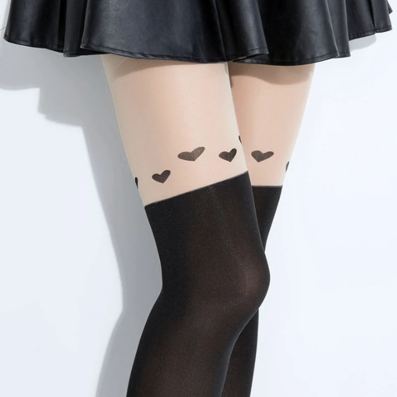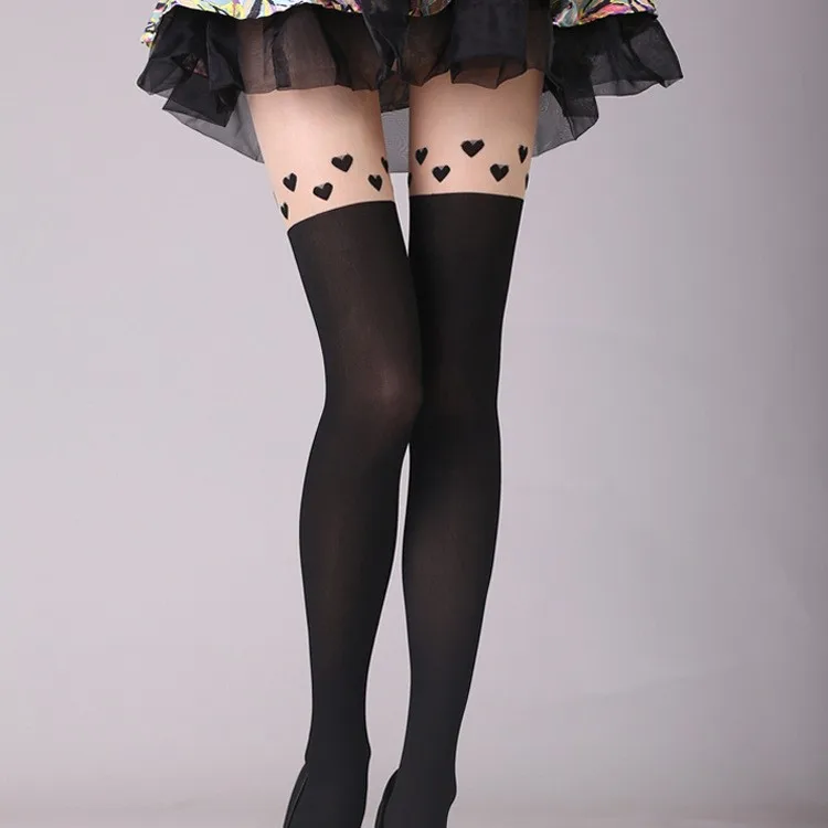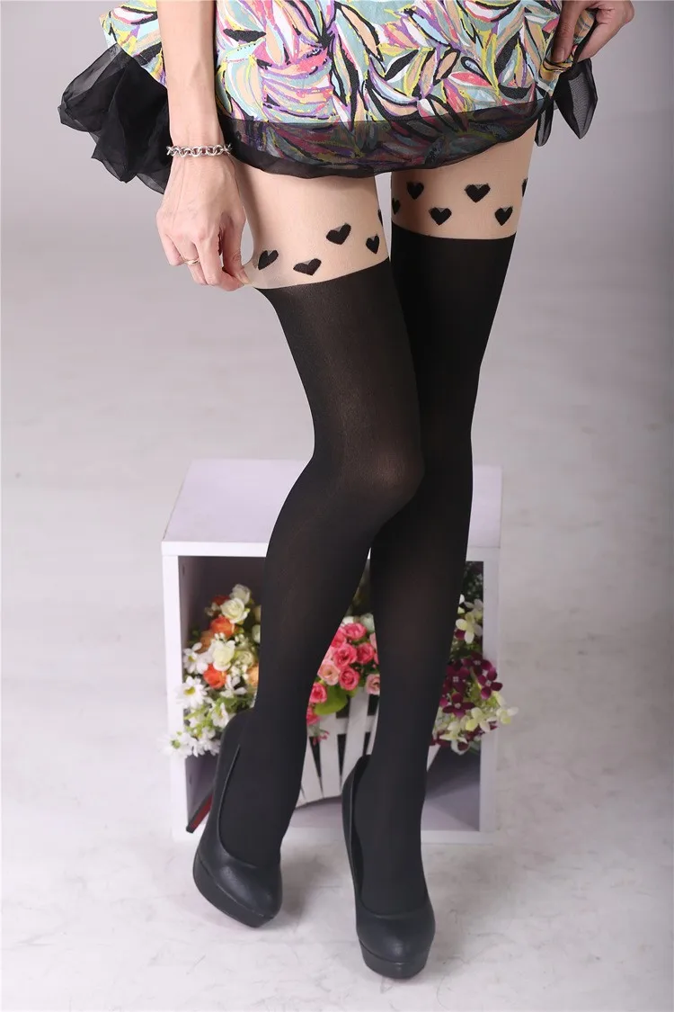 Модный новый дизайн, стильные женские колготки iurstar в виде сердца для ночных клубов, черные тонкие прозрачные высокие чулки, колготки с татуировкой