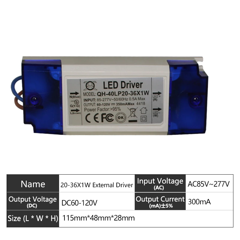 Блок питания для прожектора, 20 Вт, 30 Вт, 40 Вт, 20-36x1 Вт, DC60-120V мА, 2 шт.