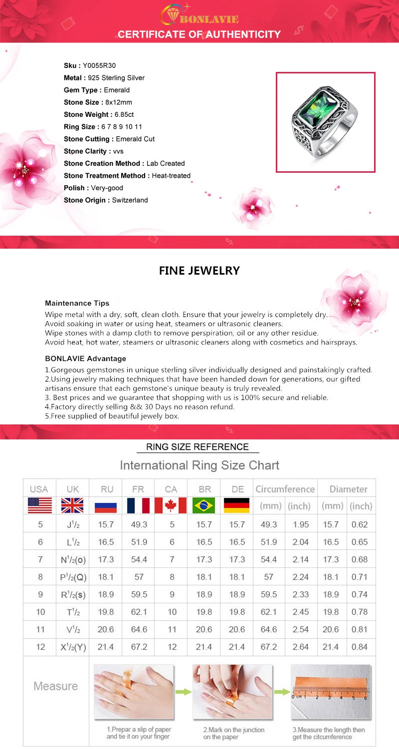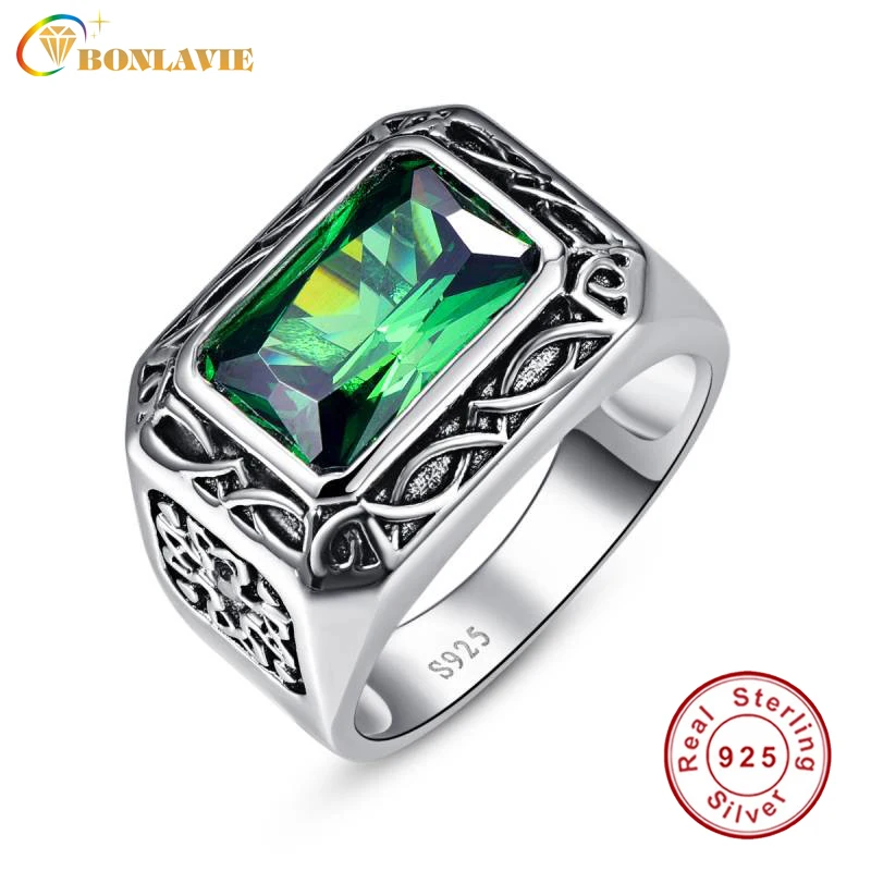 Мужское обручальное кольцо BONLAVIE, серебро 925 пробы, с нано-русским изумрудом 6,8 карата, обручальное кольцо, размер 6-14