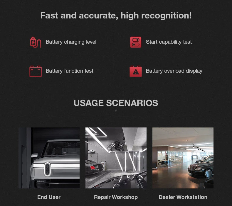 3. Быстрый и точный дисплей результатов тестирования батареи (всего 3 секунды).