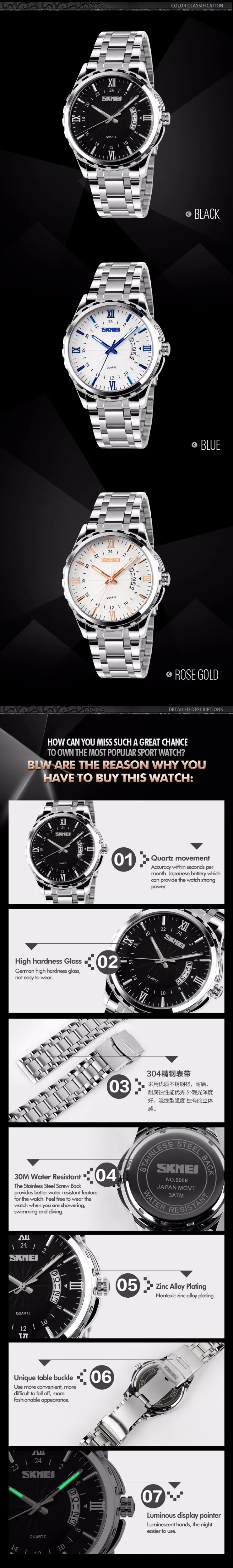 SKMEI 9069 Мужские кварцевые часы мужские полностью Стальные наручные часы для дайвинга 30 м модные спортивные часы relogio masculino 2020 Роскошные Брендовые Часы