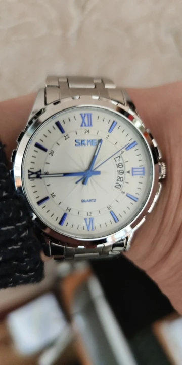 В восторге от этих часов! Выглядят точно так же, как в рекламном ролике, вживую смотрятся достойно. Не пустышка, весьма увесисты. Выбрал чёрный циферблат. Мне кажется, что он отлично сочетается с золотистыми стрелками и цифрами и лучше считывается в сравнении с серебристыми стрелками на белом циферблате. Но это дело вкуса. На стрелках есть светонакопитель, но в темноте светится не очень ярко, хотя под прямым солнцем пока не заряжал. Дата сменяется в интервале с 11 вечера до полуночи. Переживал, что браслет будет мал на большую руку. В ролике и в описании какая-то путаница с его длиной. Замерил ниткой часы с внутренней стороны (вместе с корпусом, с застёгнутым браслетом). Получилось 23 см. Запас есть, лишние звенья удалить не проблема. Упакованы часы были в толстый слой пупырки и пришли без изъянов. Дошли в Великий Новгород за 12 дней. Большое спасибо продавцу и производителю!