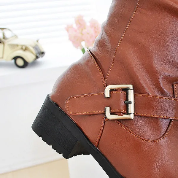 Женские сапоги с круглым носком, сапоги до колена на массивной платформе, большой размер 34-43, для весны и осени, 2016