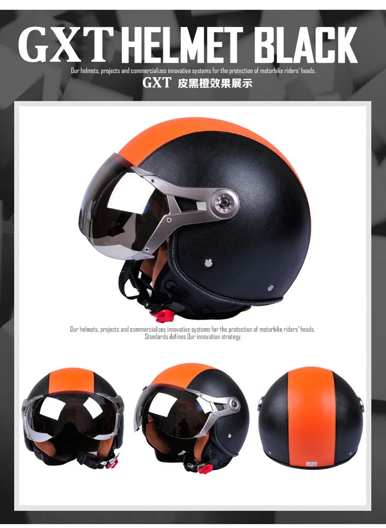 Мотоциклетные шлемы из искусственной кожи, шлемы 34, ретро шлемы, м...