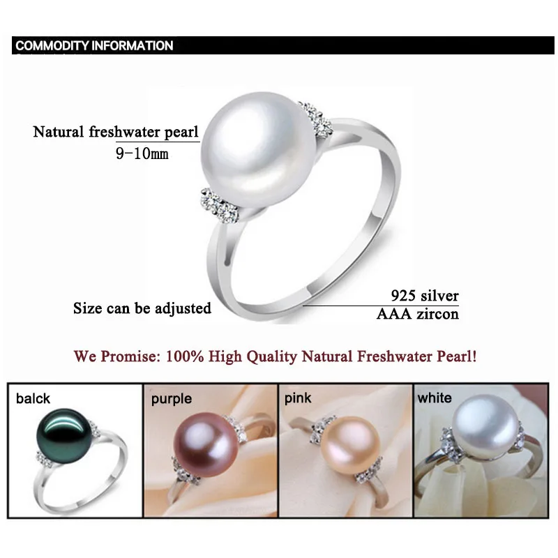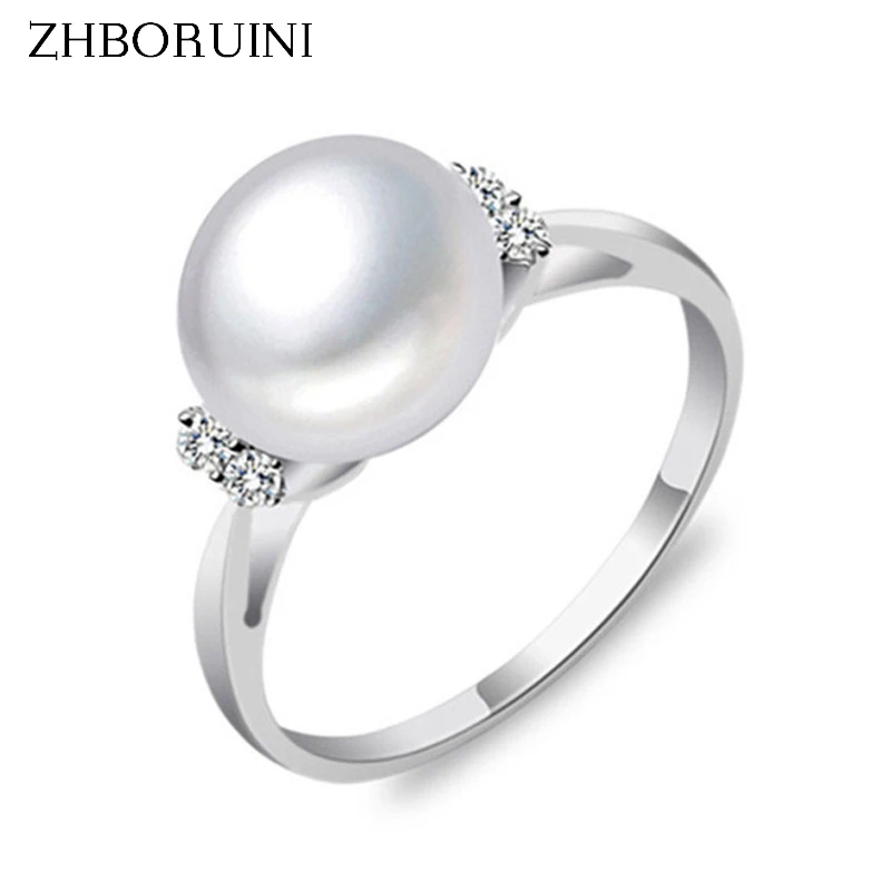 Zhboruini мода жемчужина кольцо Ювелирные изделия из жемчуга натурального пресноводного жемчуга 925 стерлингов Серебряные ювелирные изделия Кольца для Для женщин свадебный подарок