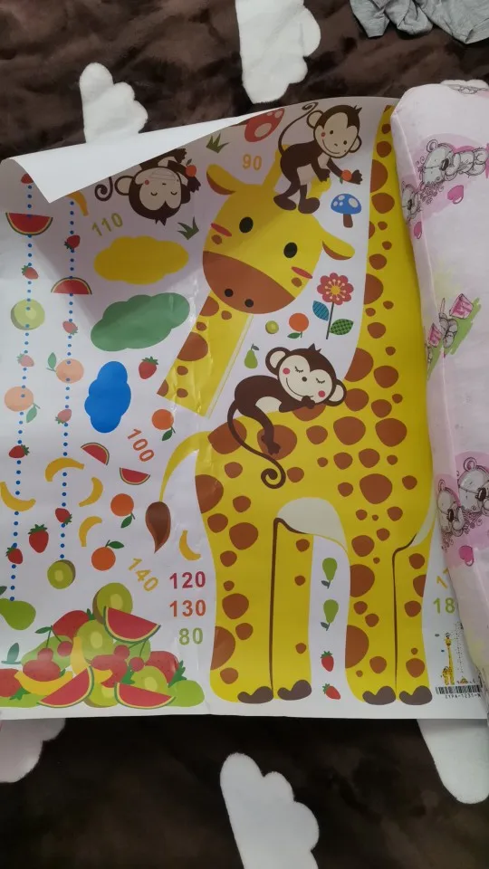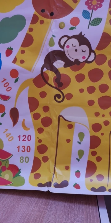 Пришло относительно быстро, где то за месяц (это при том, что заказ был на общую распродажу и с логистикой у всех проблемы). Упаковка намоткой на мягкий цилиндр, а сверху обернули в мягкий конверт - в дороге немного помяли, не критично, но следы остались. А так хороший жираф, ребёнок чуть подрастет и наклеим на обои. Продавцу спасибо!